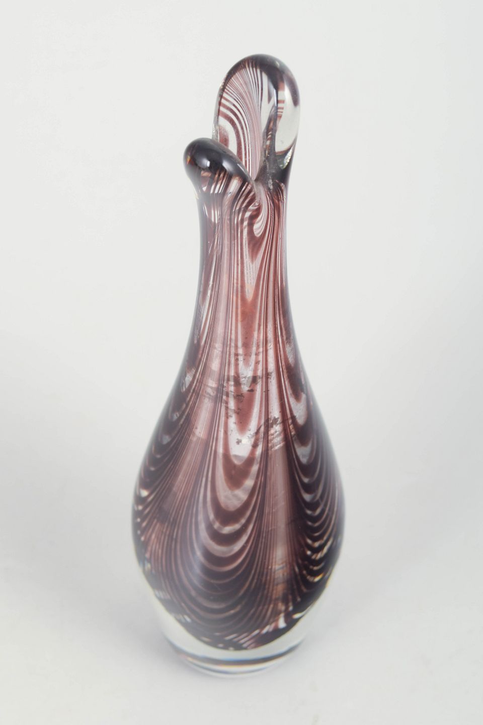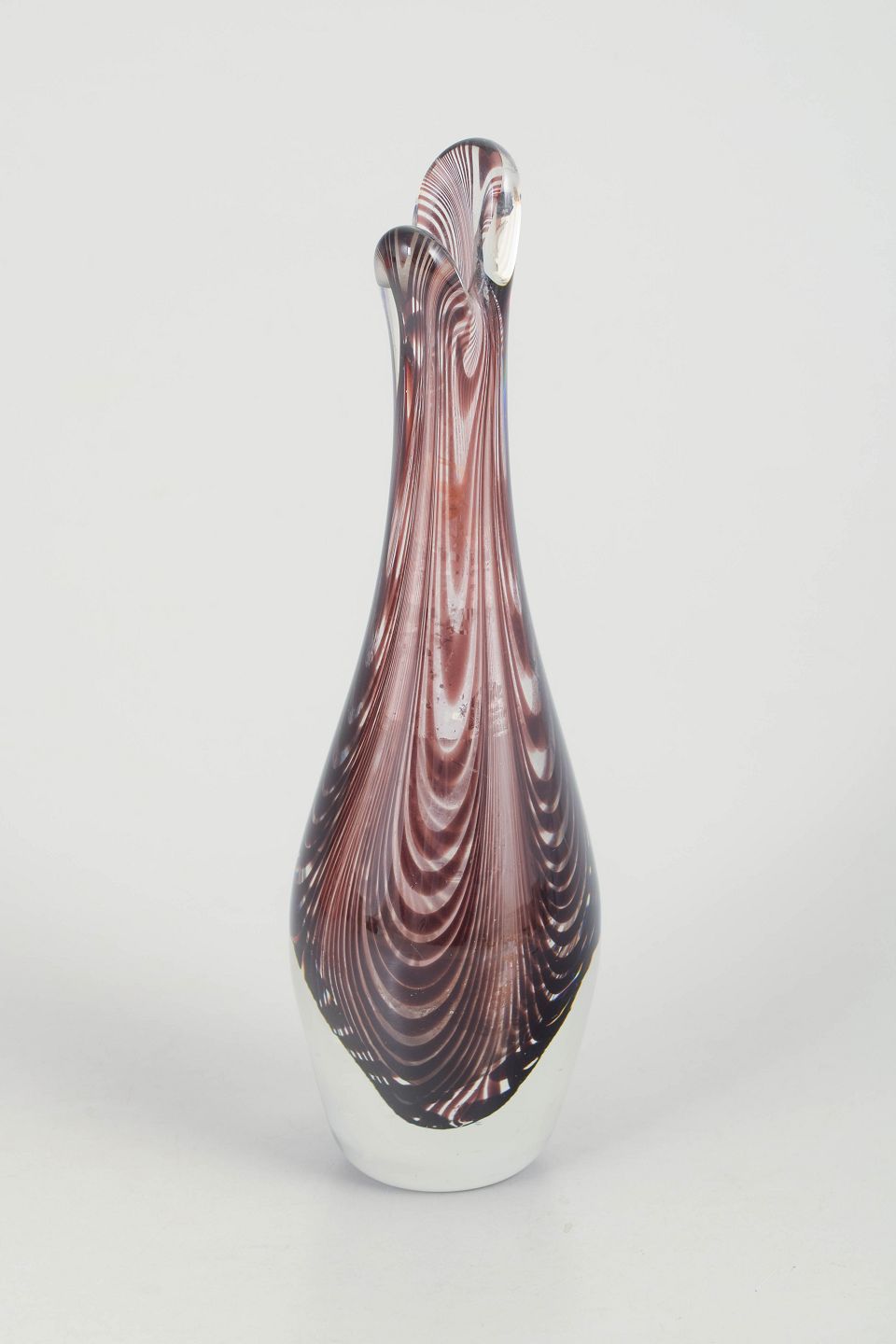 Murano is an island in the Venetian Lagoon that has been the centre of Italian glassmaking since the late 13th century. In 1291 the Venetian authorities ordered glass furnaces to move from Venice to Murano to protect the valuable secrets of glass production and reduce fire risks in the city. Over the centuries Murano glassmakers developed advanced techniques in coloured glass and decorative thread structures, where fine glass threads are incorporated into the material to create dynamic patterns. During the mid-20th century Murano gained international recognition for modern art glass characterised by organic forms and decorative effects that remain highly sought after by collectors today.