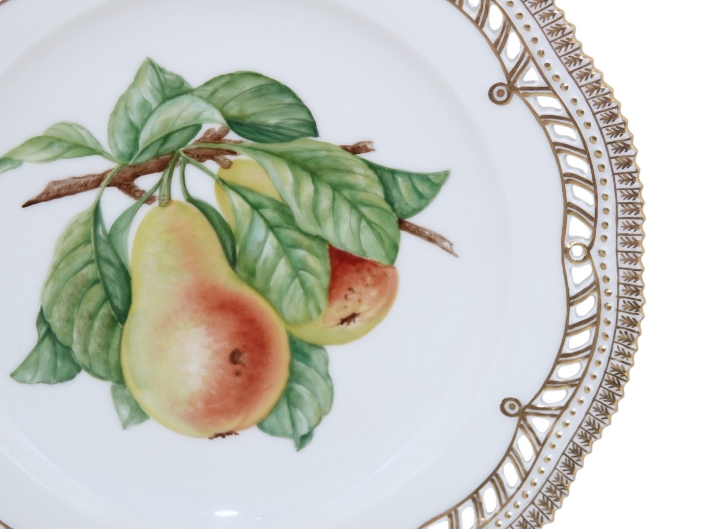 Royal Copenhagen Flora Danica, fruit plate decorated with pears and with pierced border.