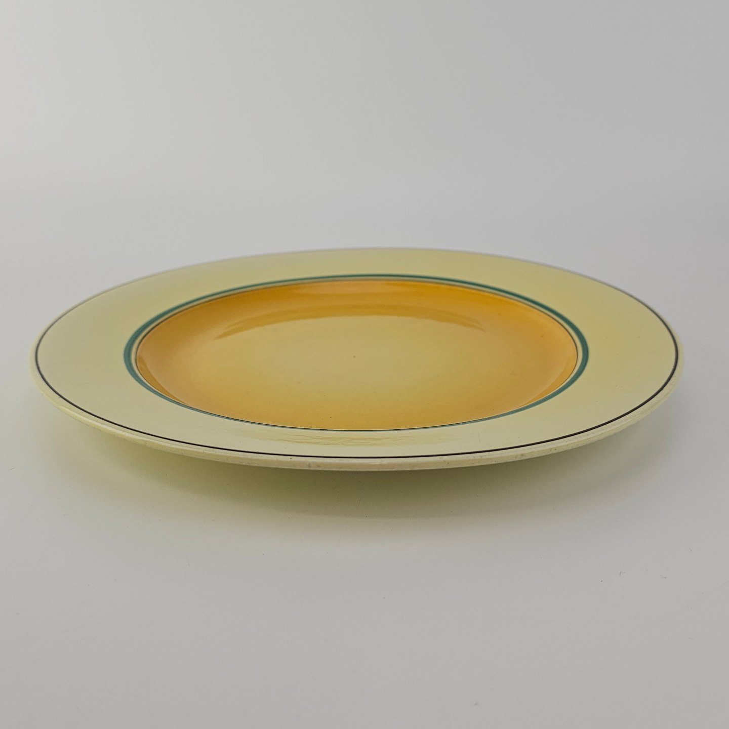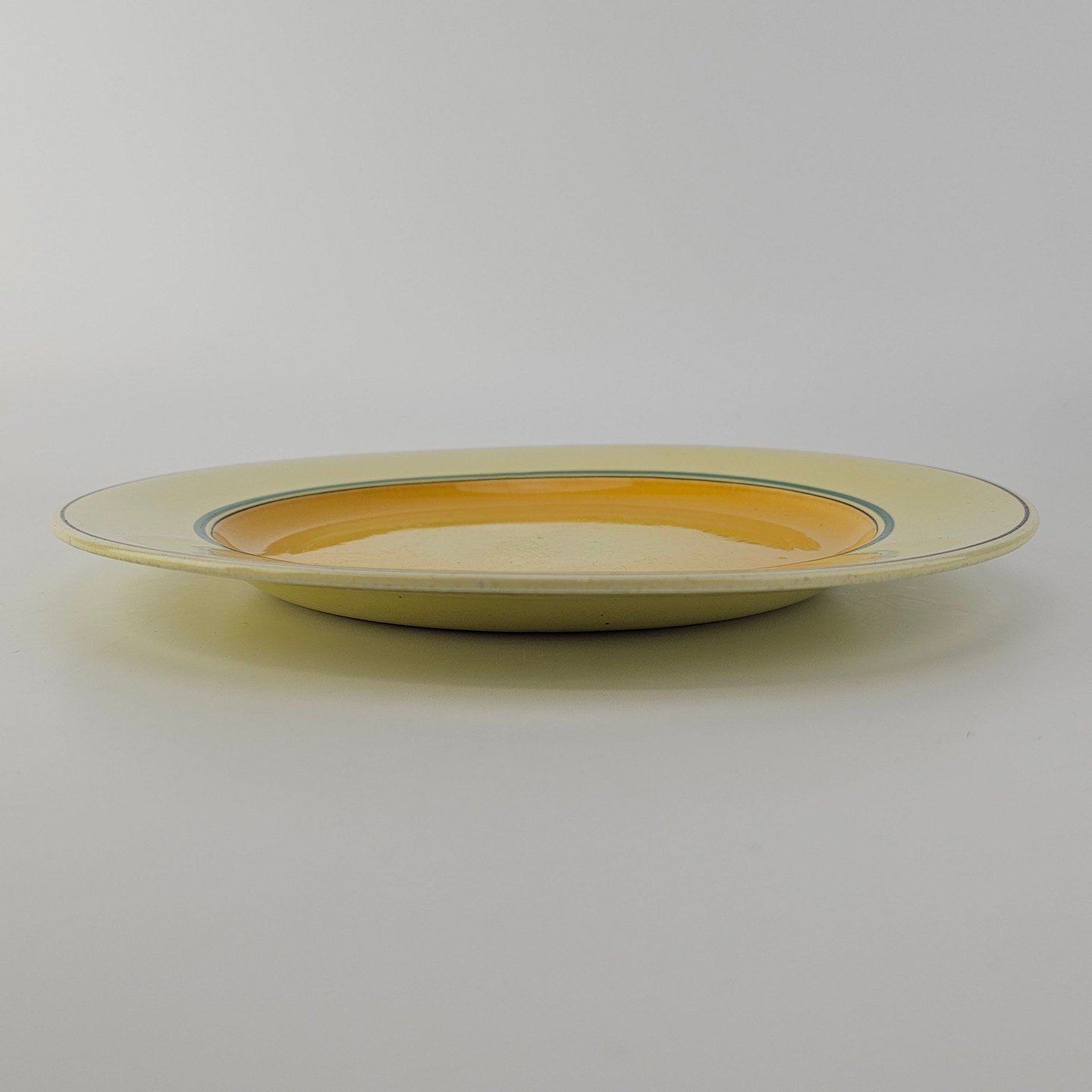 Flad tallerken i fajance fra stellet Gertrud fremstillet i perioden 1933-1939.