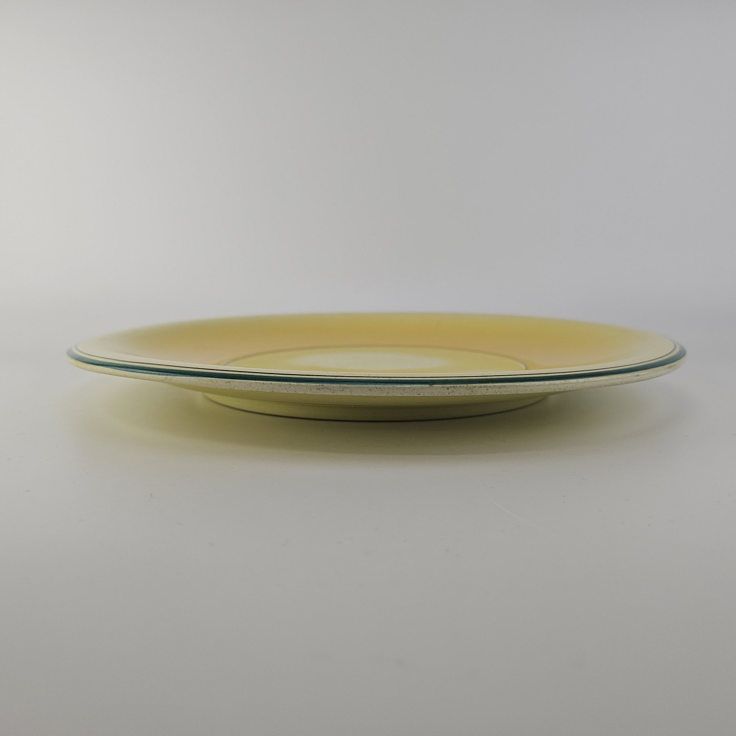 Rundt fladt fad i fajance fra stellet Gertrud fremstillet i perioden 1933-1939.