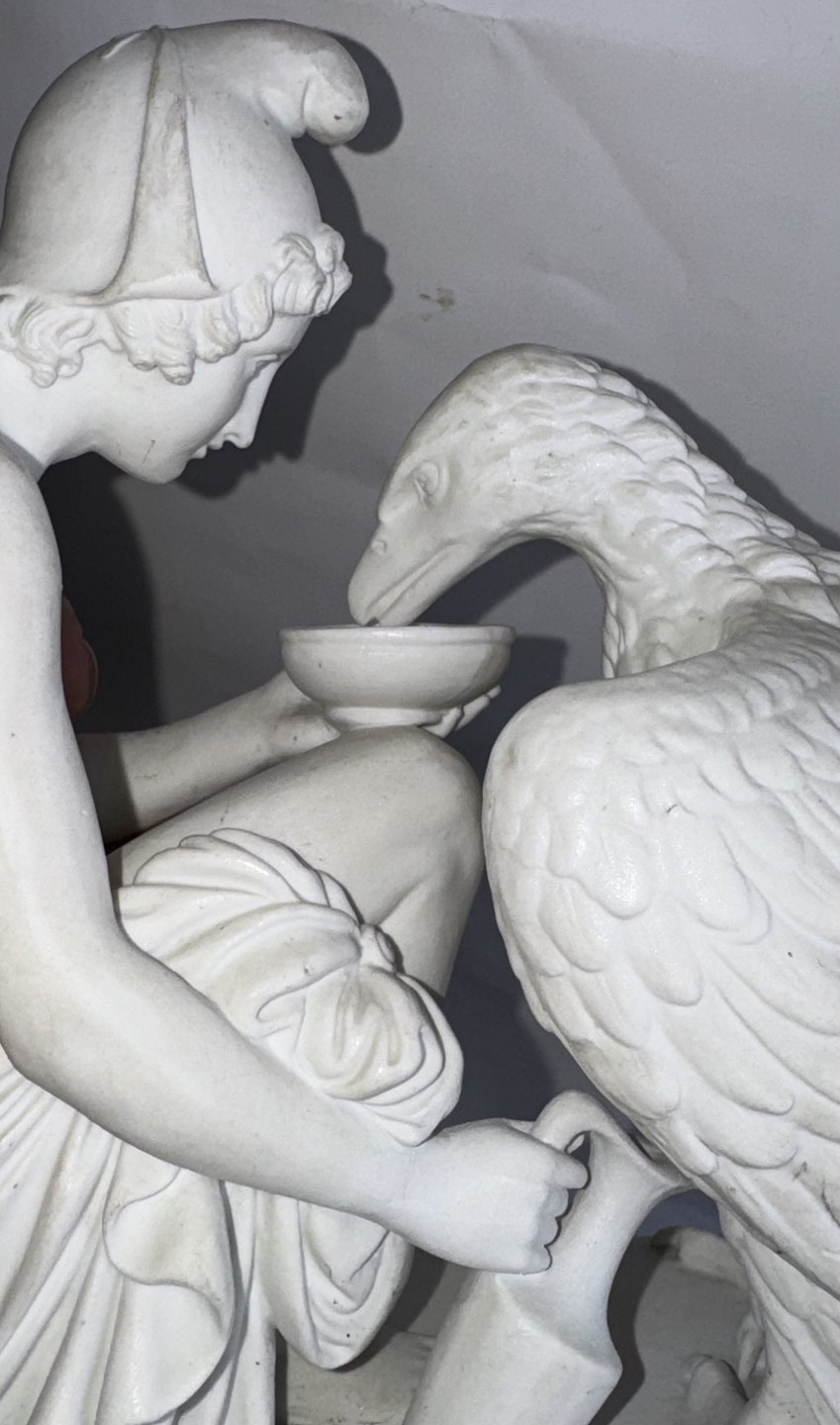 Bertel Thorvaldsen: Ganymedes with Jupitar's eagle in biscuit from Bing & Grøndahl.