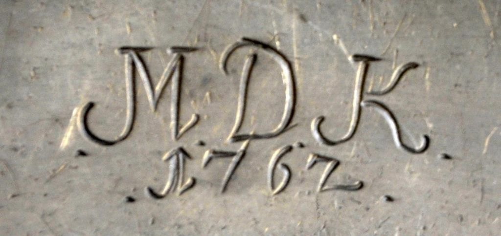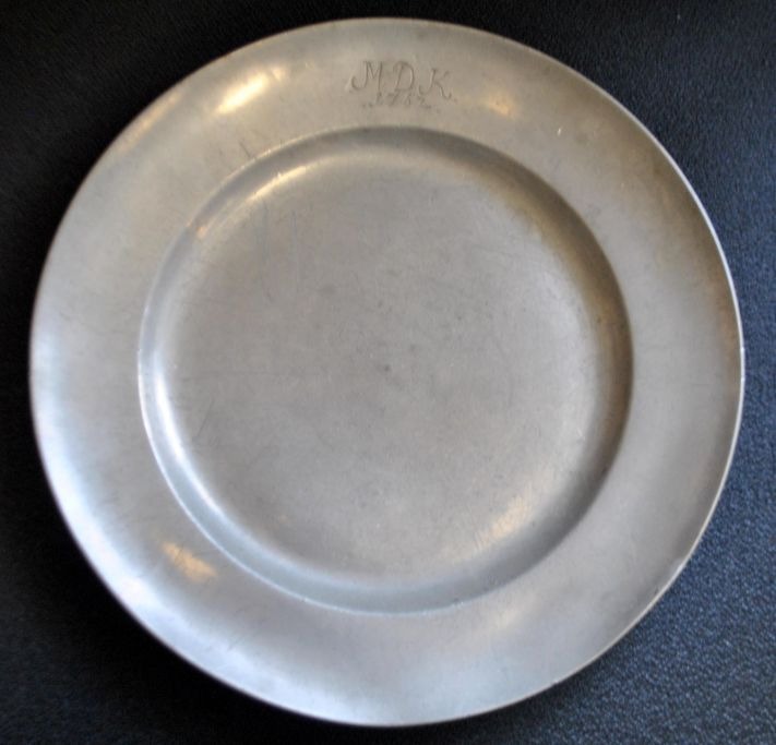 Pewter plate, 1708, Germany. Engraved: MDK 1767. Stamped: ICW 1708. Diameter: 24 cm.