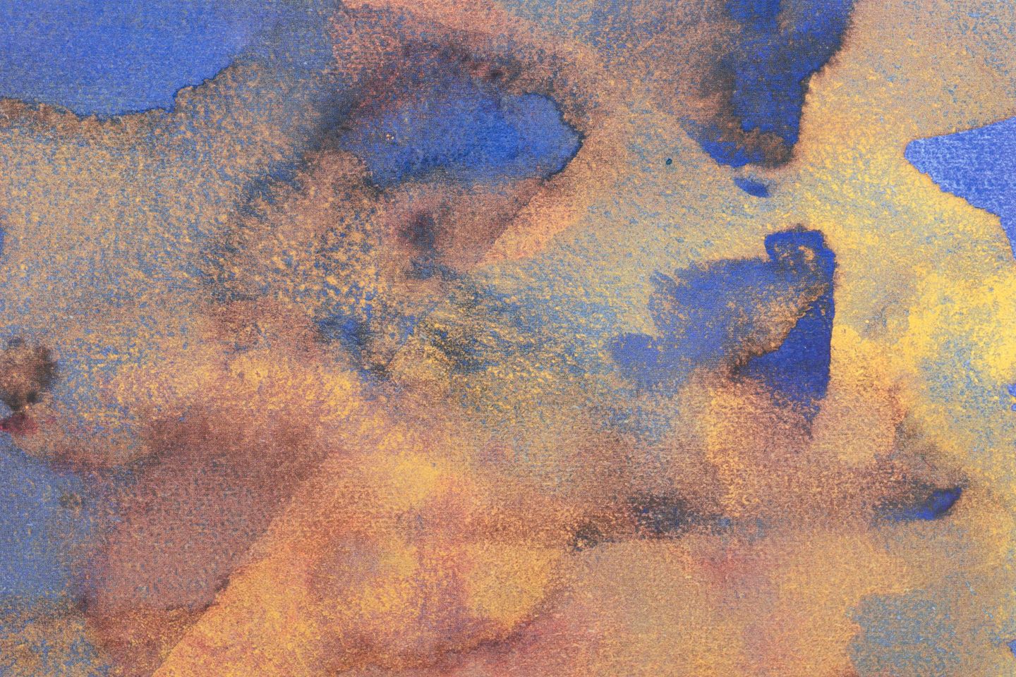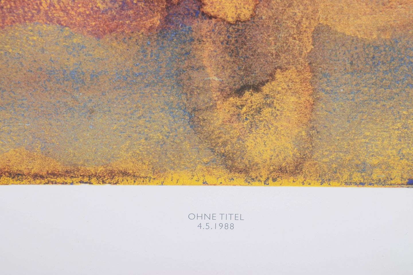 Abstract composition executed as a colour print with soft transitions in blue, pink, yellow and beige tones. Signed in the print and dated 1988.