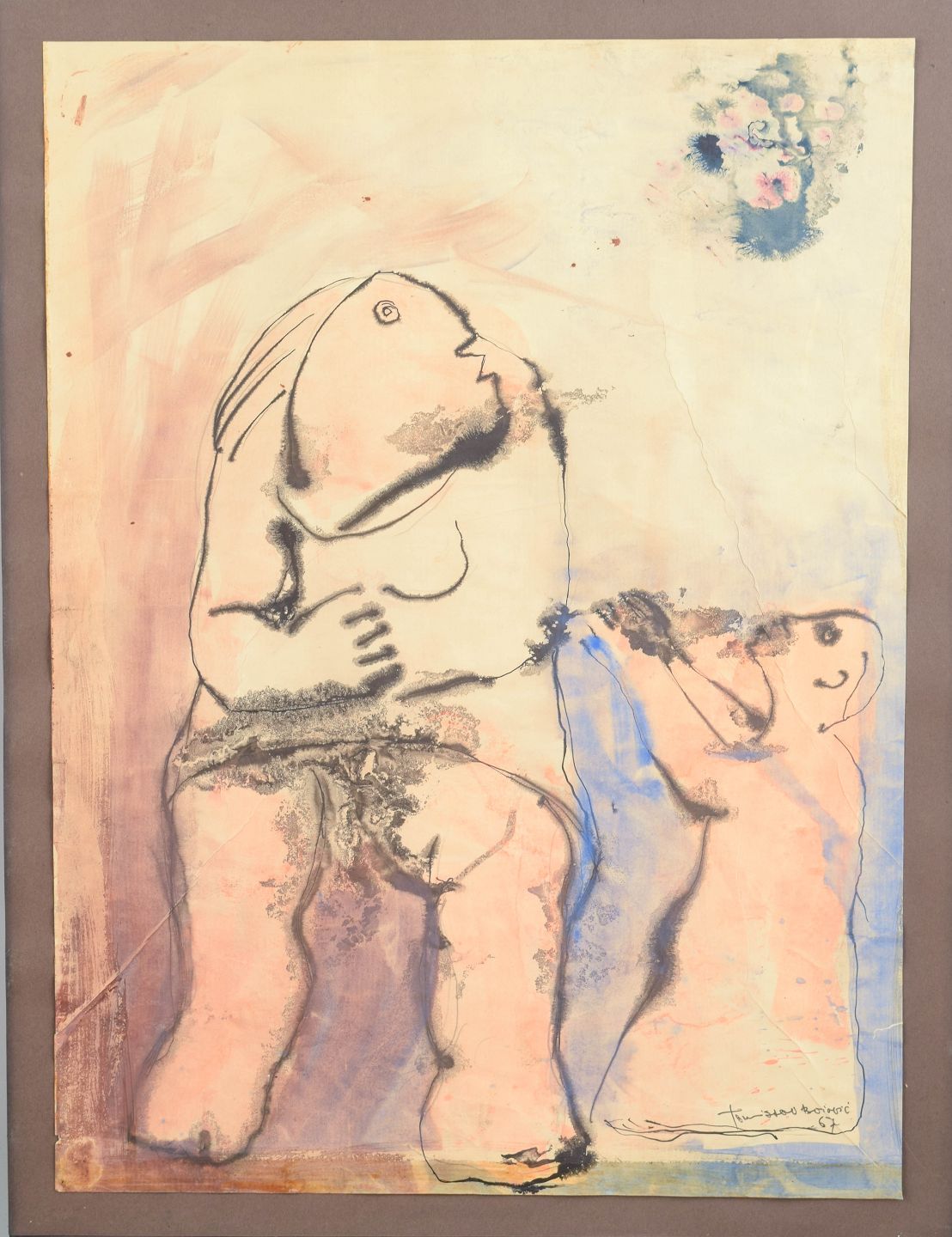 Naturalistic composition executed in watercolour on paper with a lively and expressive brushwork. The work is signed and dated 1967 within the composition.