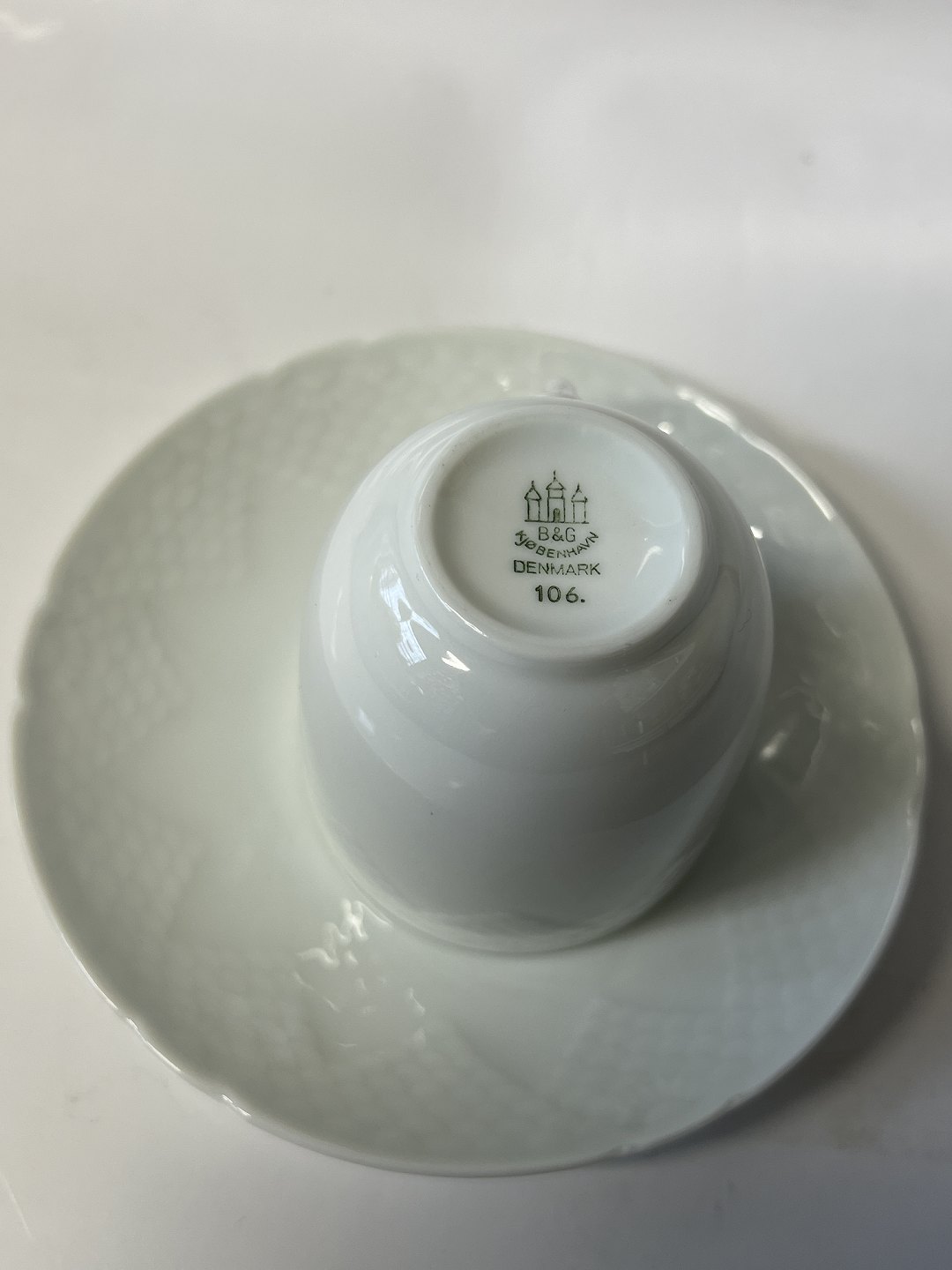 Elegance white small espresso cup with saucer. Bing and Grondahl