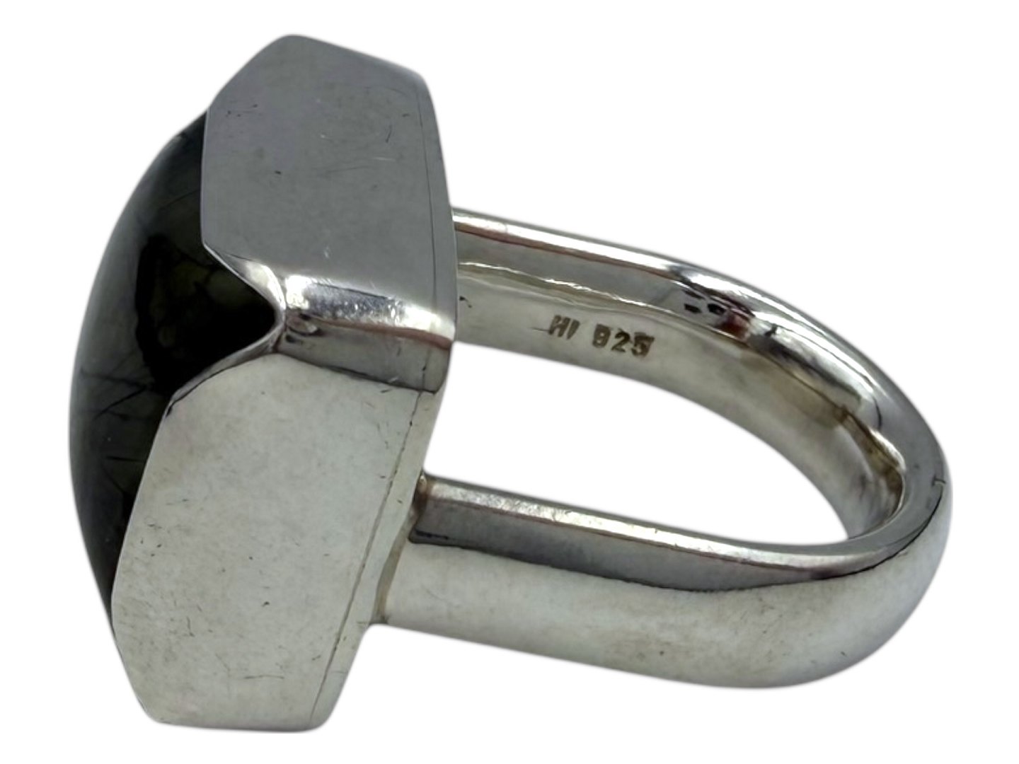 Bonita Hightower sterling silver, heavy ring with large rutile quarts stone.