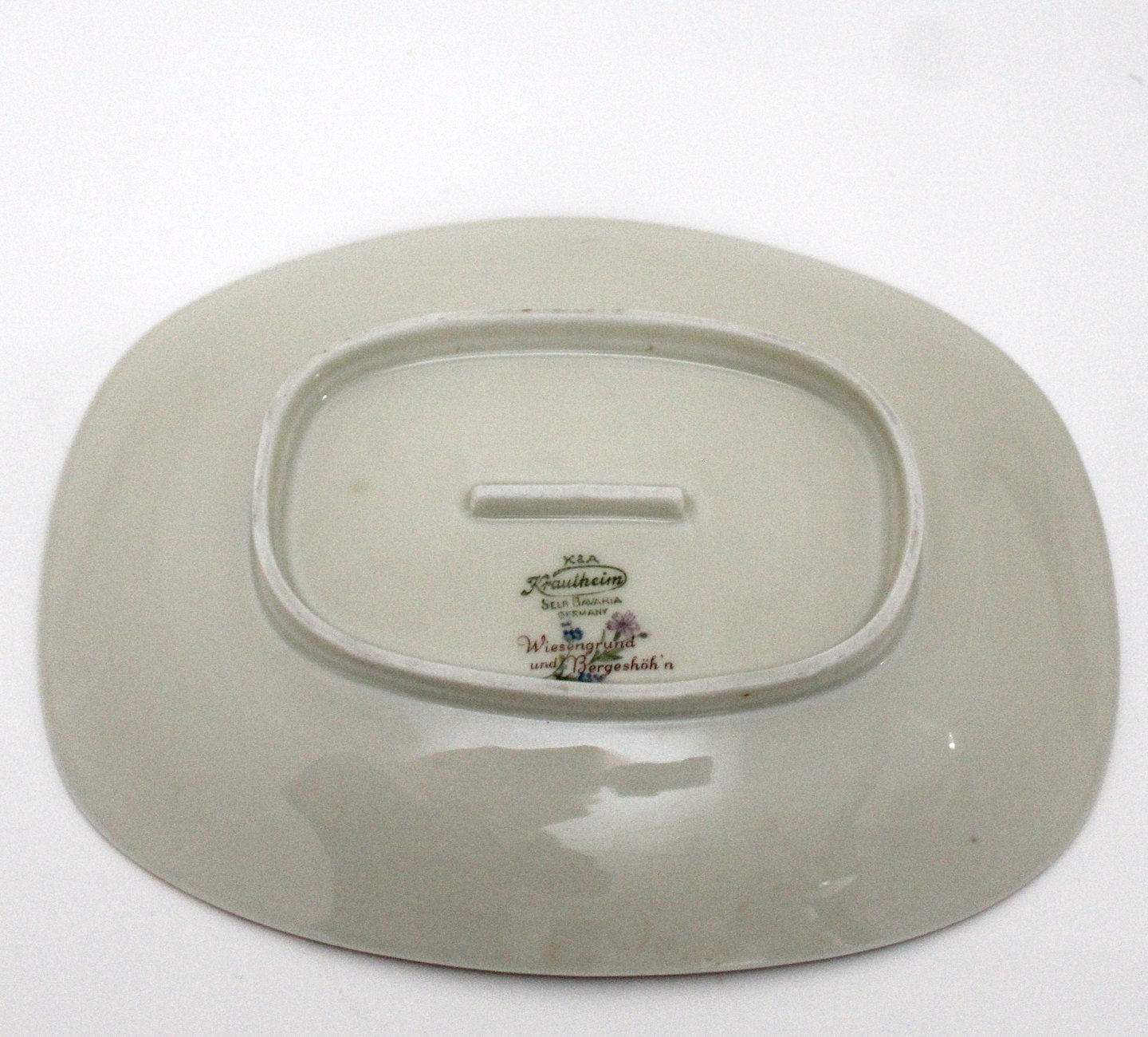 Rektangulært fad på fod, 2 forskellige motiver. Længde 22 cm. Bredde 17,5 cm. Højde 4 cm. Pris: 175 kr. stk. Lager: 2