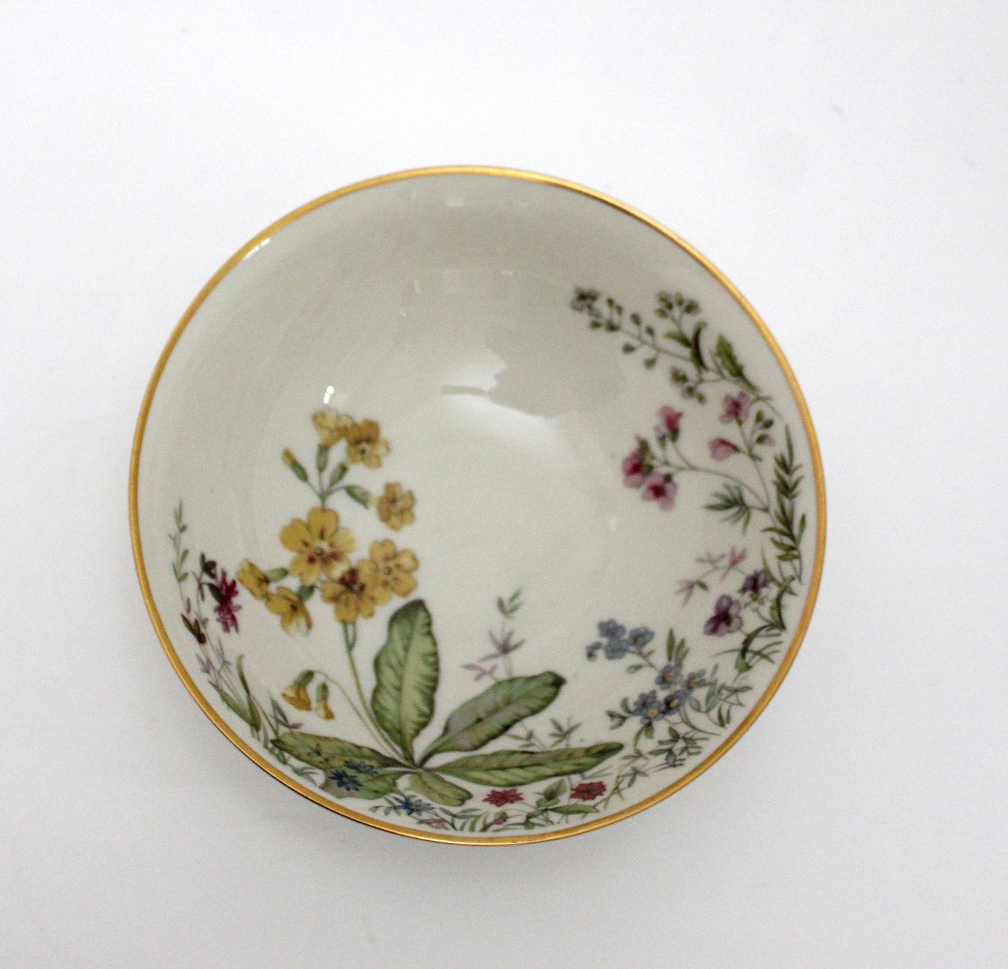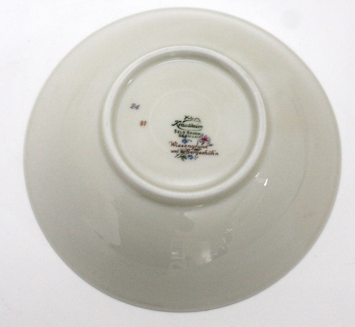 Text available in Danish: Krautheim, Selb Bavaria, Germany, Danmarks Flora cremet stel med guldkanter motiv Danmarks flora flere forskellige motiver.