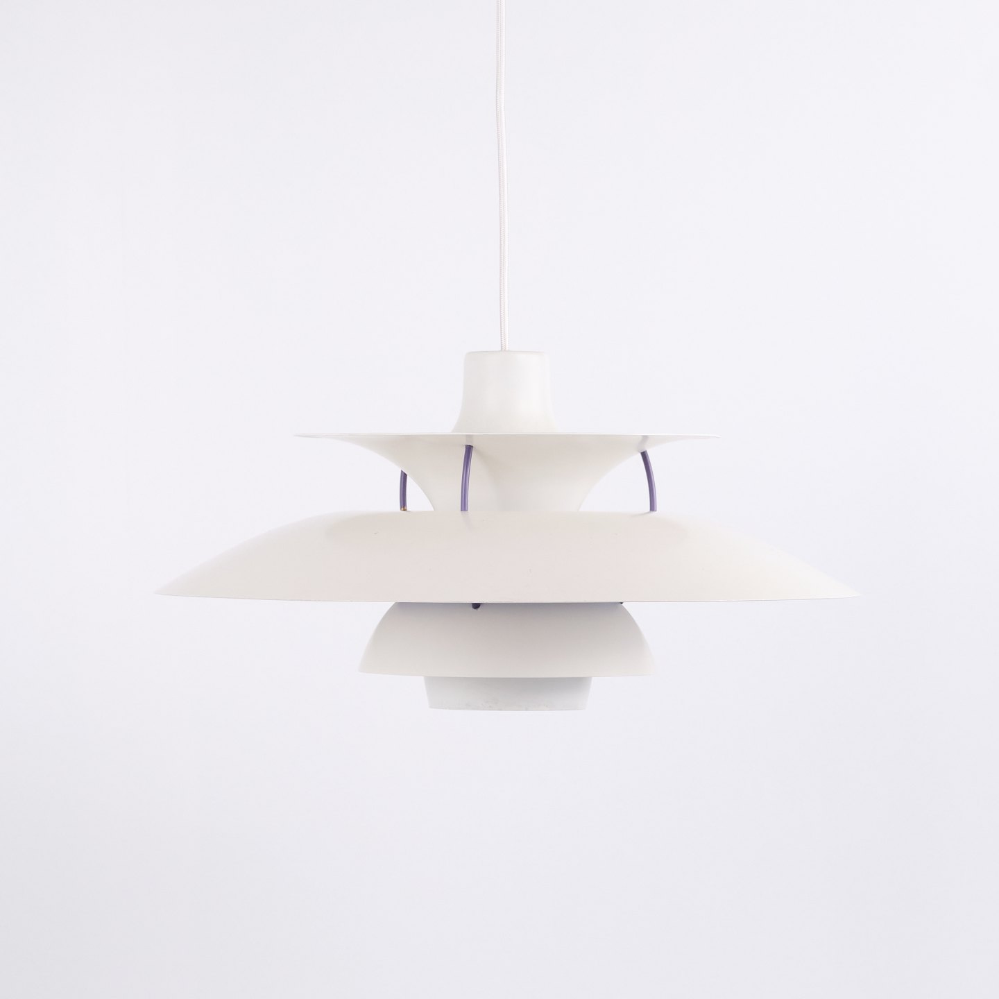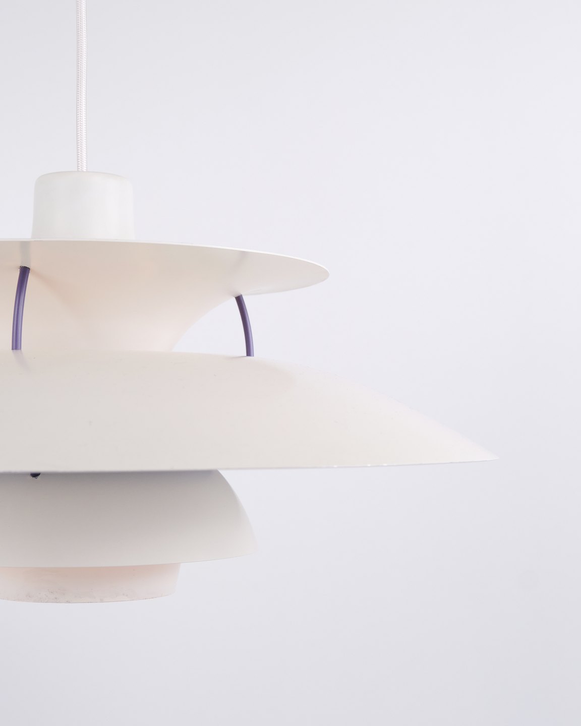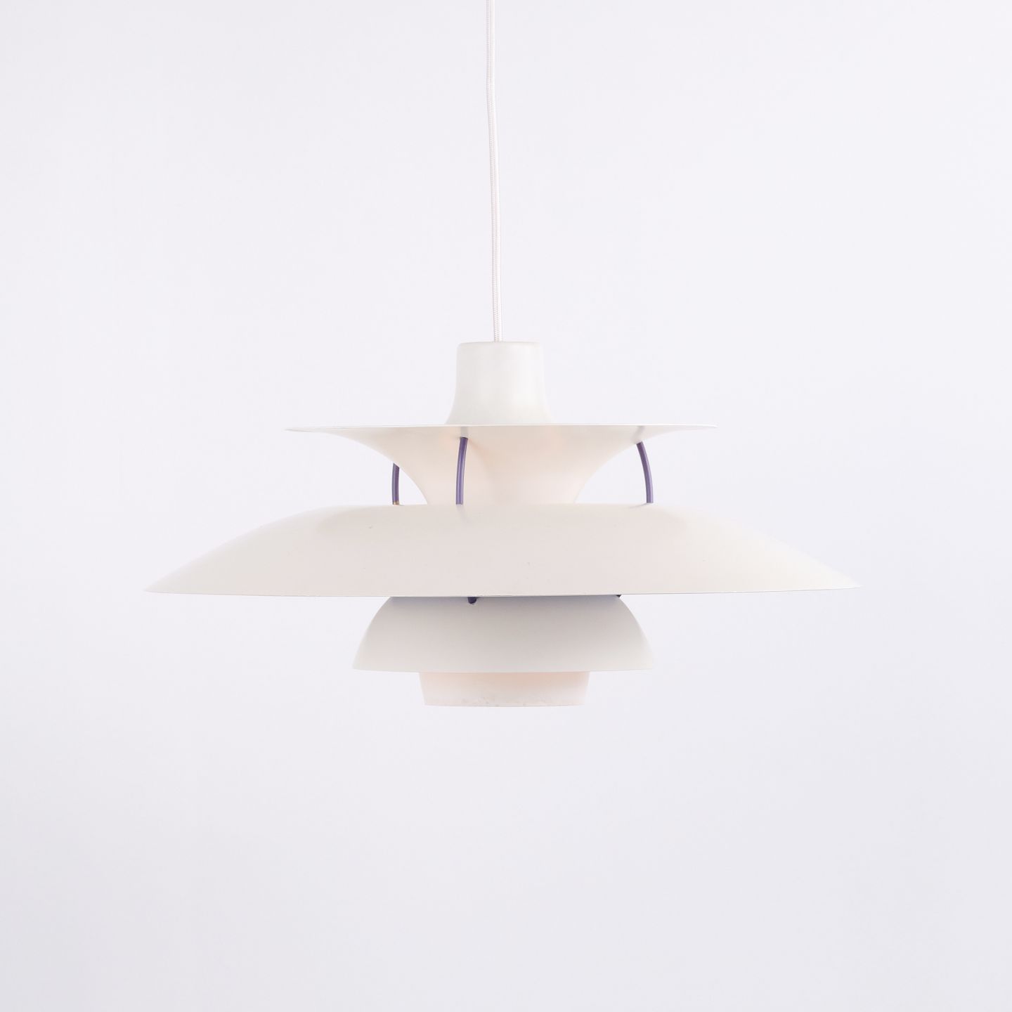 PH 5 pendant in white lacquered metal from Louis Poulsen designed by Poul Henningsen. Classic Danish lamp with glare-free and functional light.