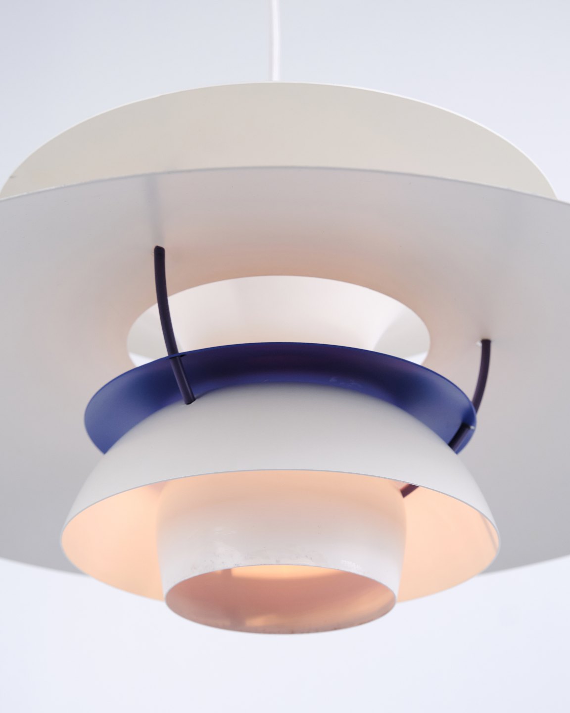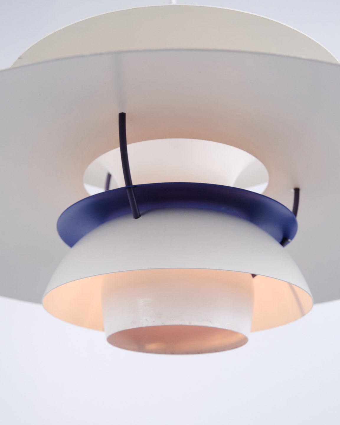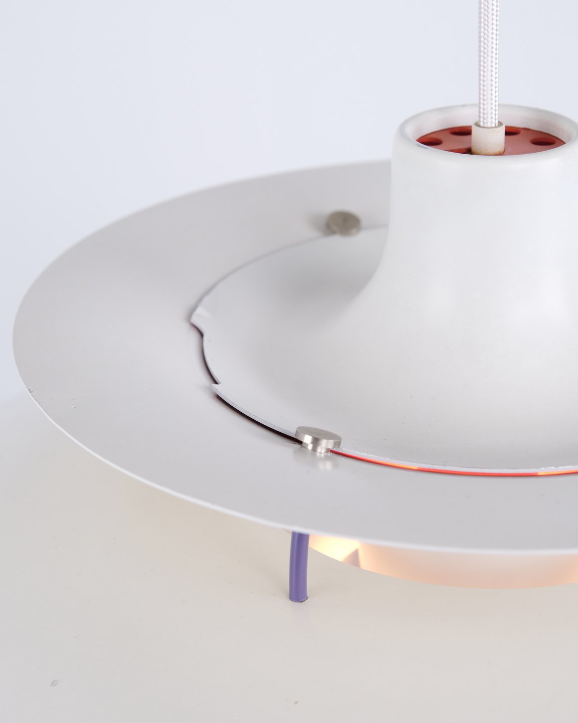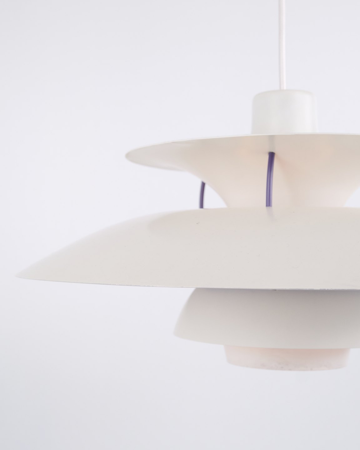 PH 5 pendant in white lacquered metal from Louis Poulsen designed by Poul Henningsen. Classic Danish lamp with glare-free and functional light.