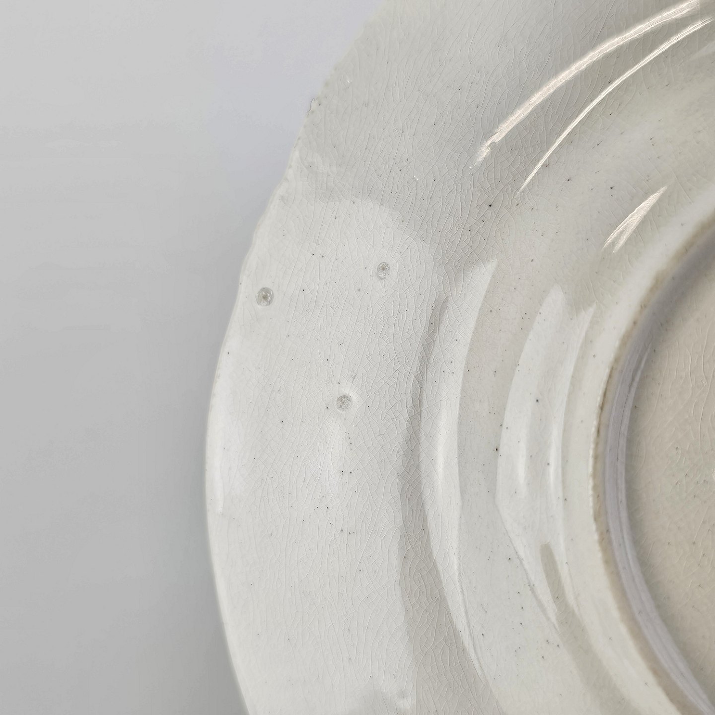 Flad kagetallerken i hvid fajance fra stellet Blå Cenerarier