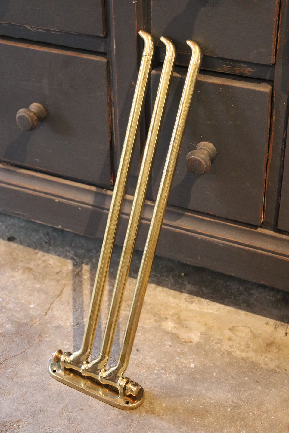 Old French wall-mounted towel holder in solid brass with a fine patina...
