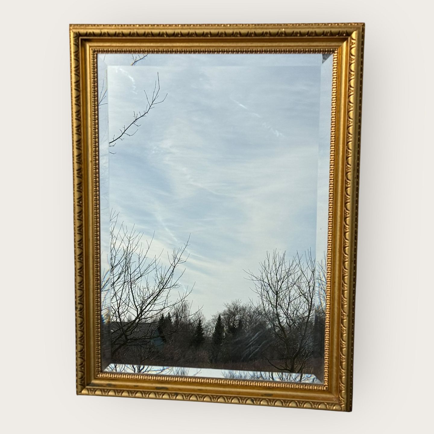 Newer beveled mirror in gold-painted frame, Dimensions: 81x61 cm *Good condition*
