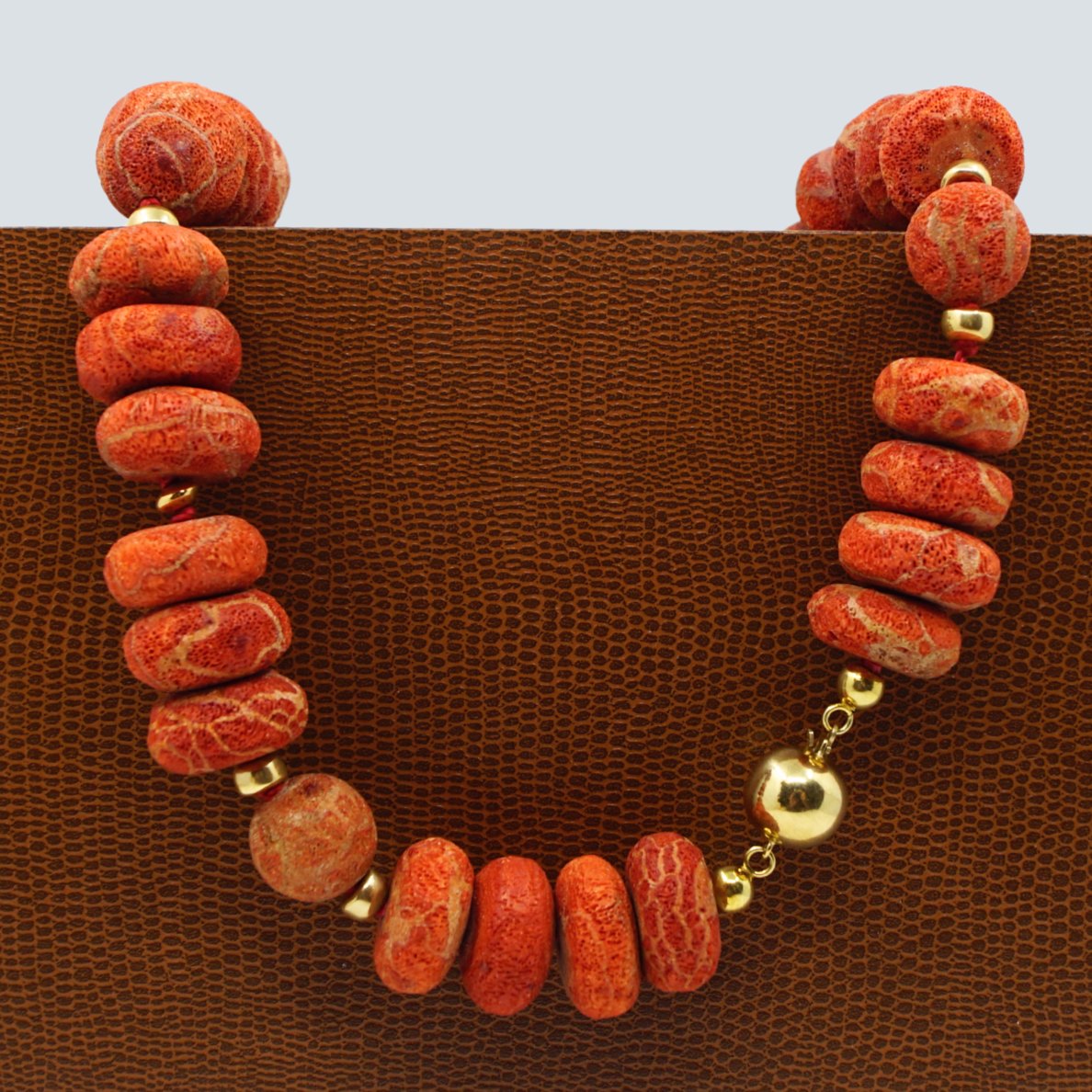 Necklace of coral, with 14k gold. With round clasp in 14k gold.