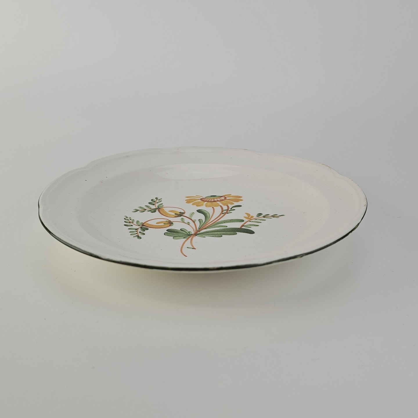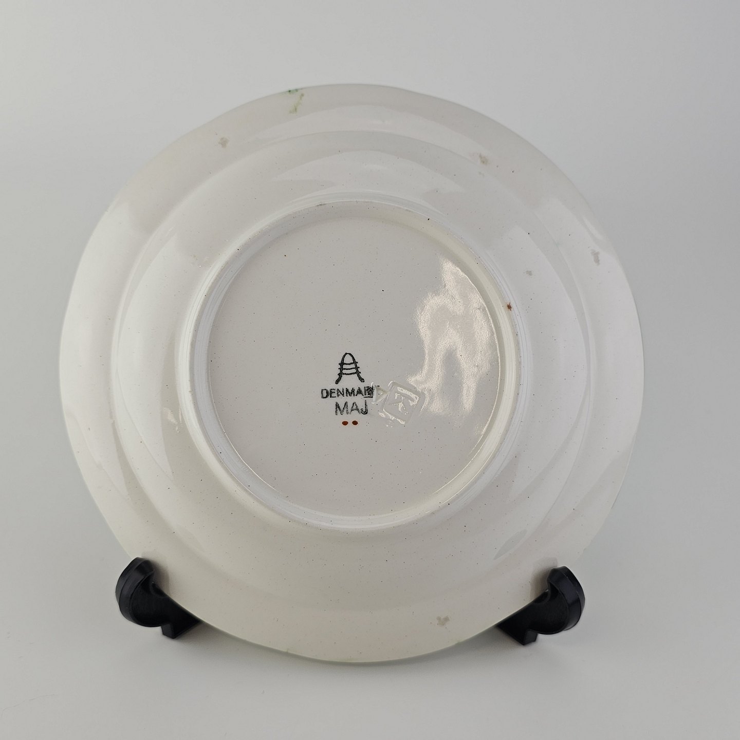 Dyb kagetallerken i fajance fra stellet Maj fremstillet i perioden 1941-1966.