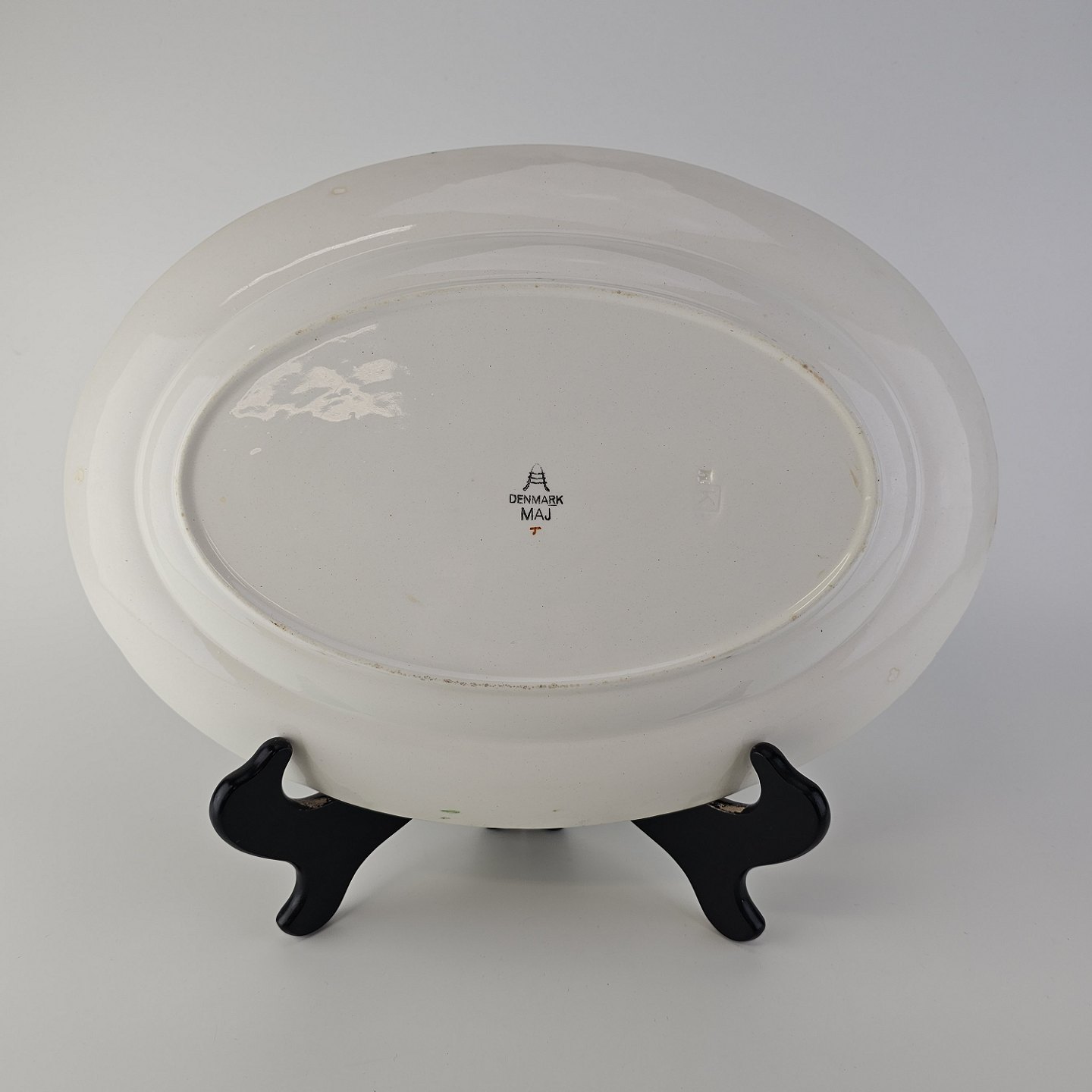 Ovalt fad i fajance fra stellet Maj fremstillet i perioden 1941-1966.