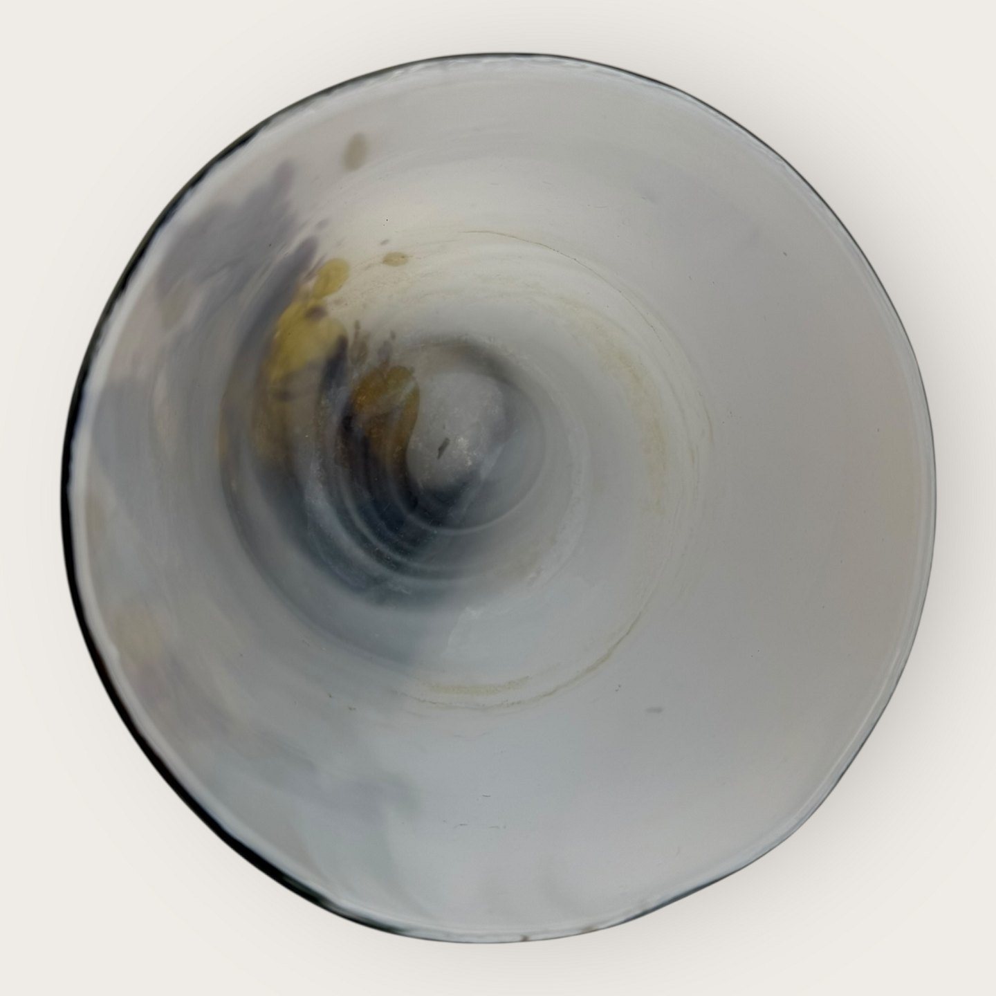 Holmegaard, Cascade, flower pot covers, opal white glass and yellow, brown and purple, Diameter 16cm, height 13.5cm, Design Per Lütken, 2nd grade *slight unevenness at the edge otherwise good condition*