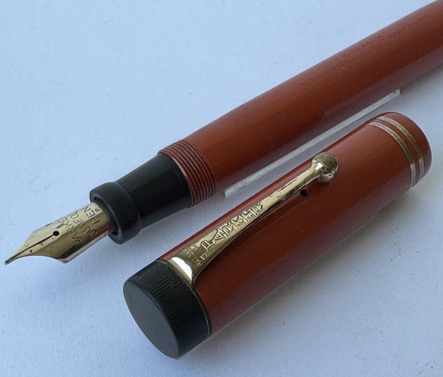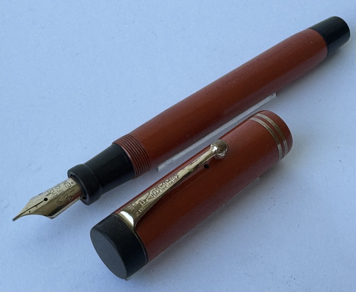 Coral red Parker Duofold fountain pen
