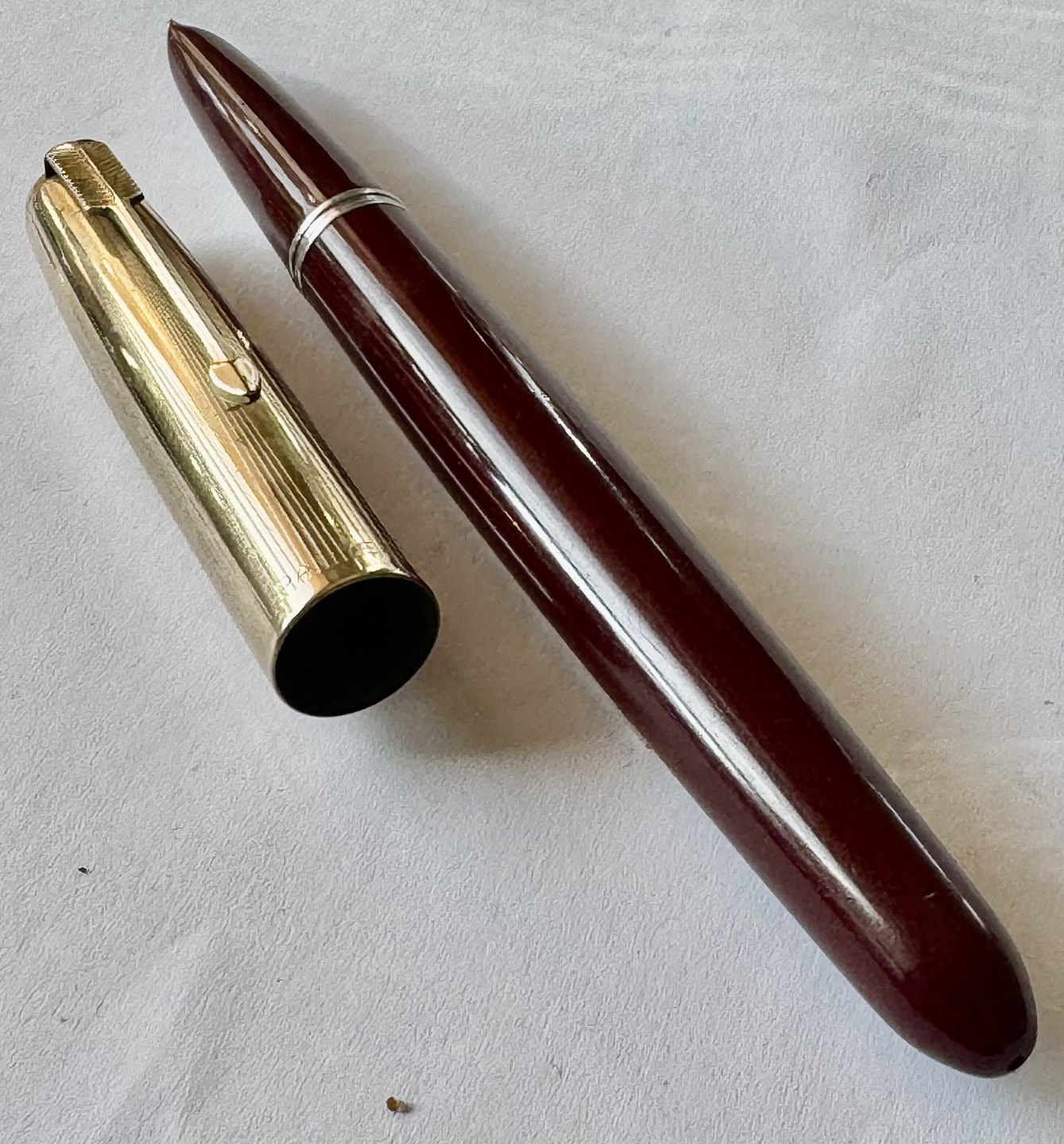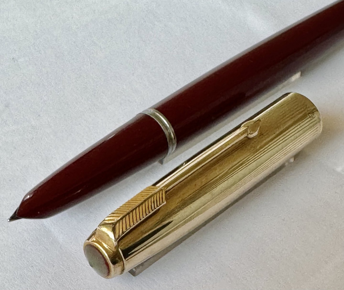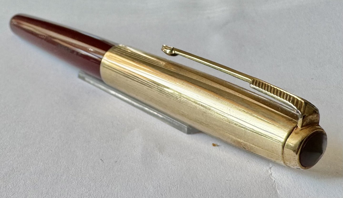 Burgundy Parker 51 fountain pen with gold rolled cap