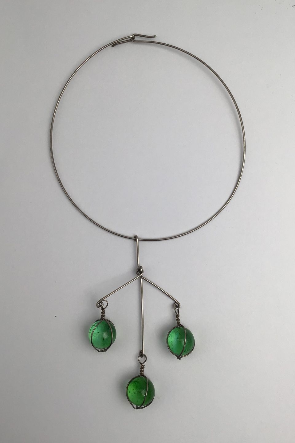 Bent Knudsen Sterling Silver Neck Ring with Pendant (Green Glas Spheres)