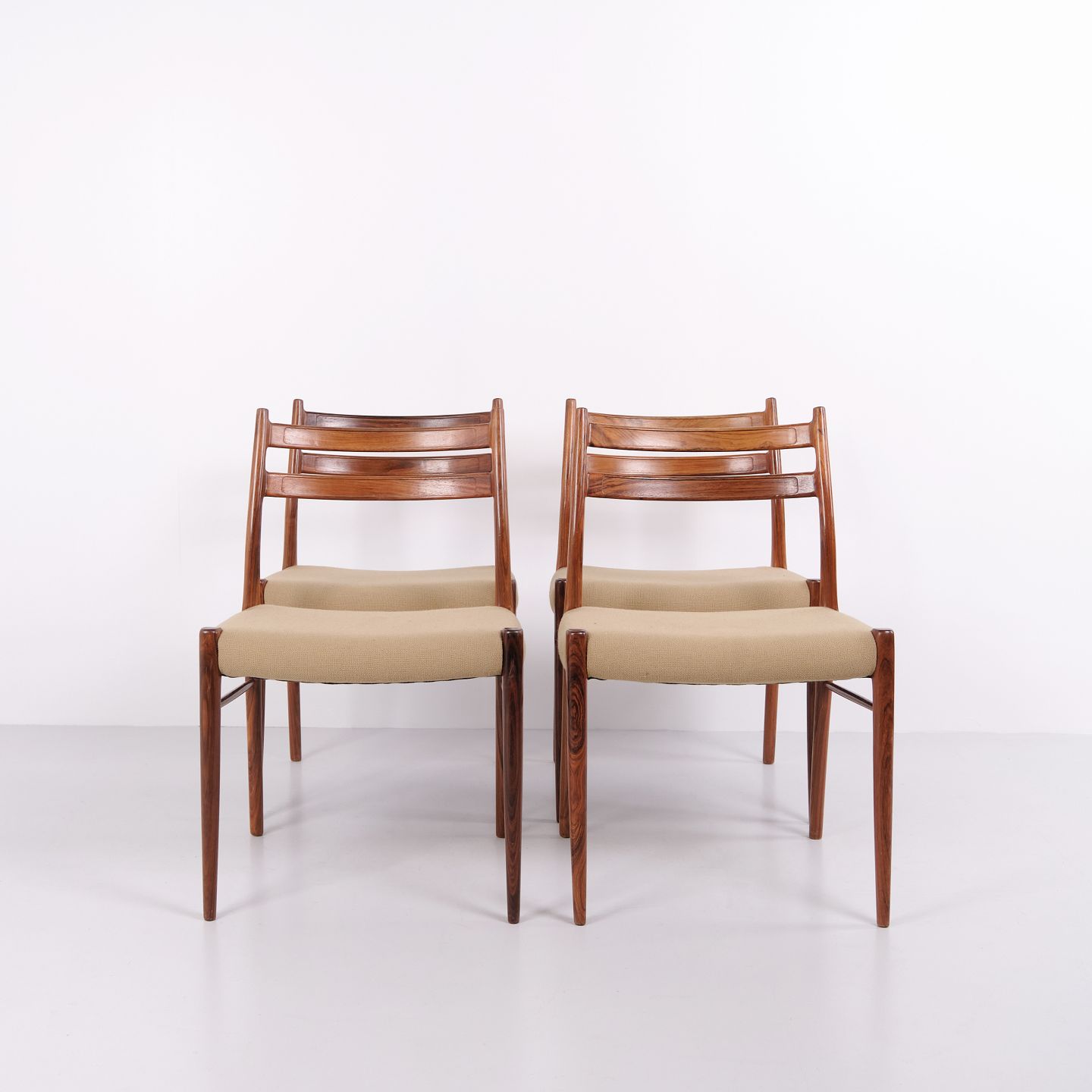 Set of 4 dining chairs in rosewood by Arne Wahl Iversen for Glyngøre Stolefabrik. Danish design from the 1950s.