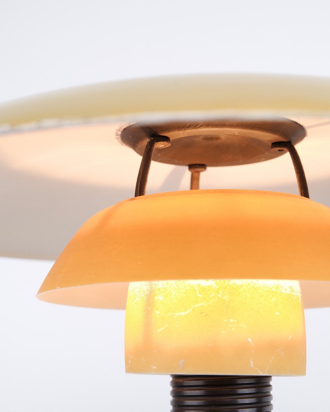 — Material: Yellow-painted metal and opal glass