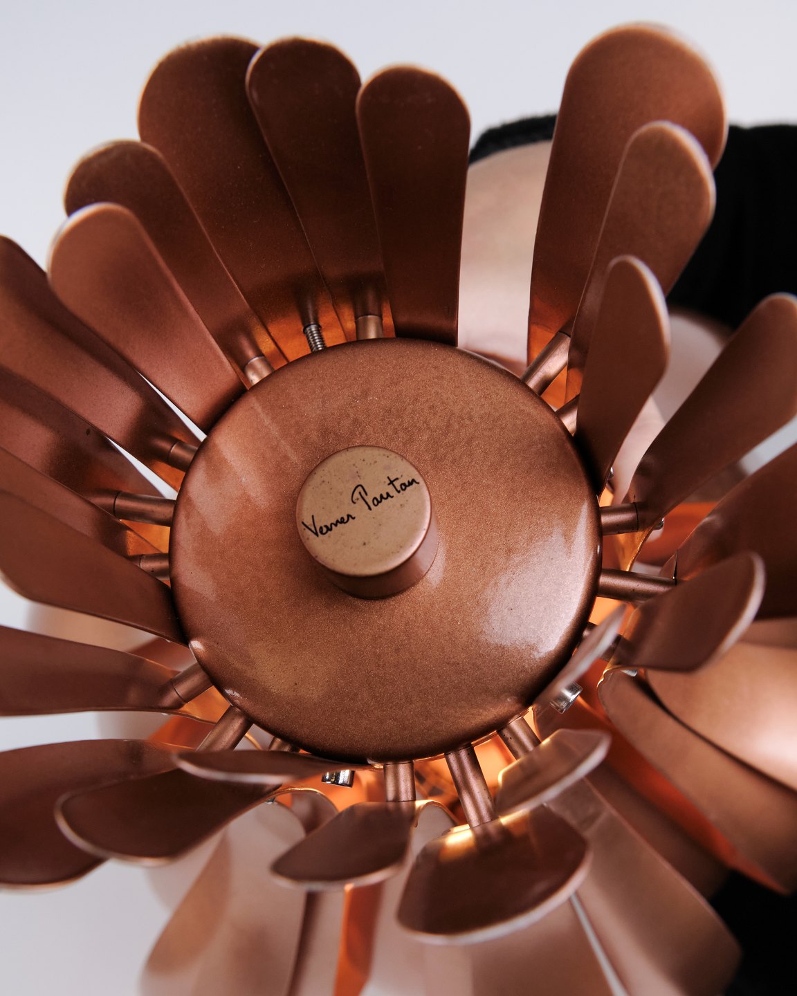 Rare Onion table lamp designed by Verner Panton in the 1970s. The lamp is made of copper and defined by its organic, layered form, creating a sculptural and decorative appearance. The construction provides a soft and atmospheric light, where reflections in the copper enhance the character of the lamp.