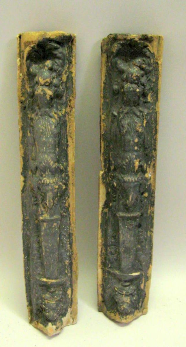 Pair fireplace columns, 17th century. Renaissance. Decorated with hermas and rams. H: 44 cm. Germany.