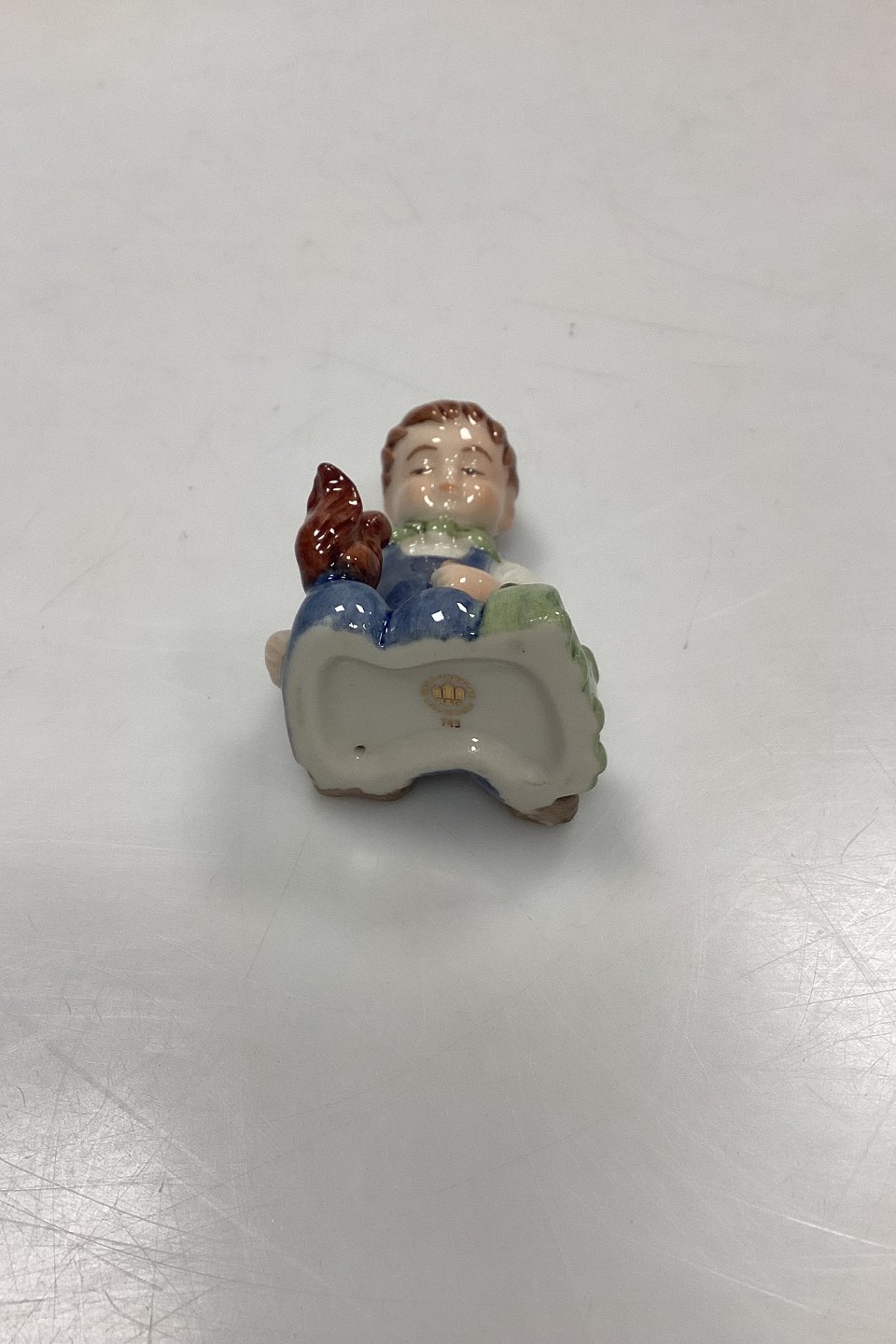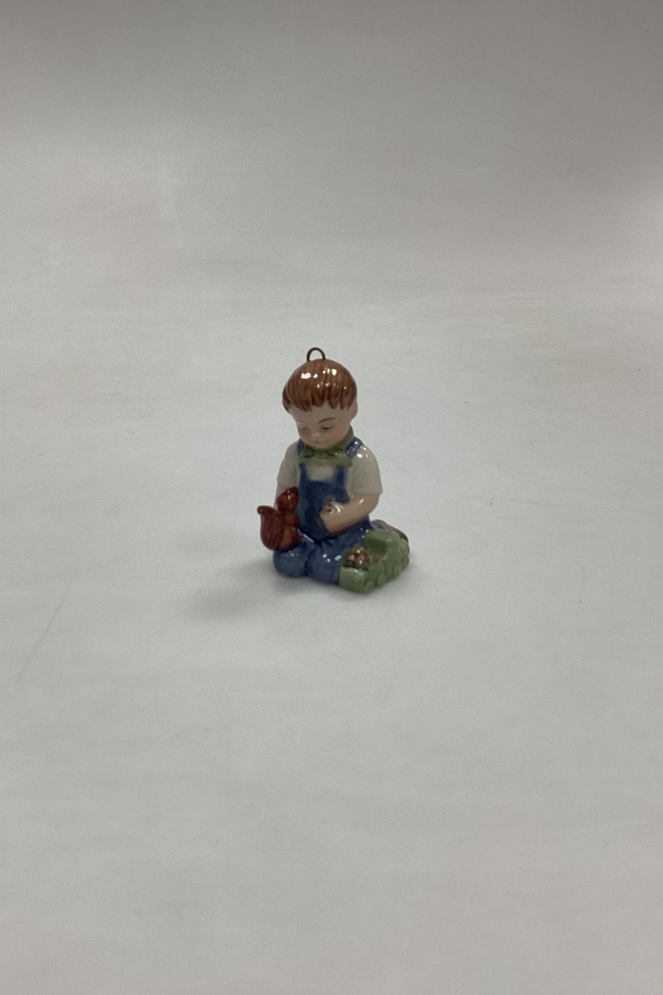Bing and Grøndahl Collections 2001 Christmas Ornament - Christian No. 743. Designed by Sven Vestergaard. Boy with train and squirrel. Figurine for hanging.