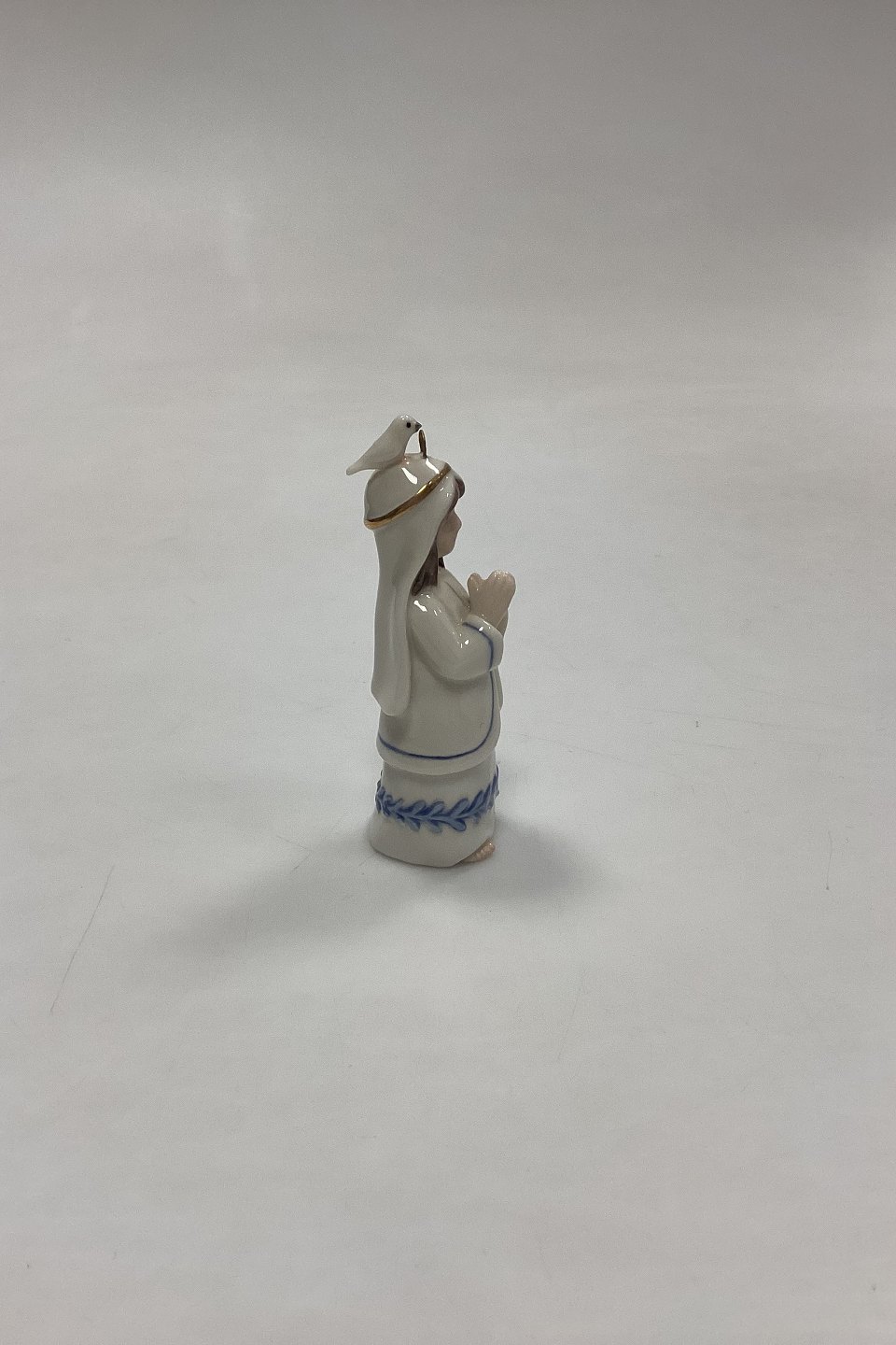 Royal Copenhagen Children's Christmas 2007 Christmas Ornament Sara - No. 385. Designed by Ingrid Jensen. Girl with bird. Figurine for hanging.