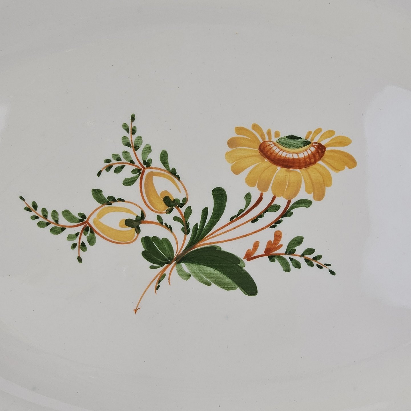 Ovalt fad i fajance fra stellet Maj fremstillet i perioden 1941-1966.