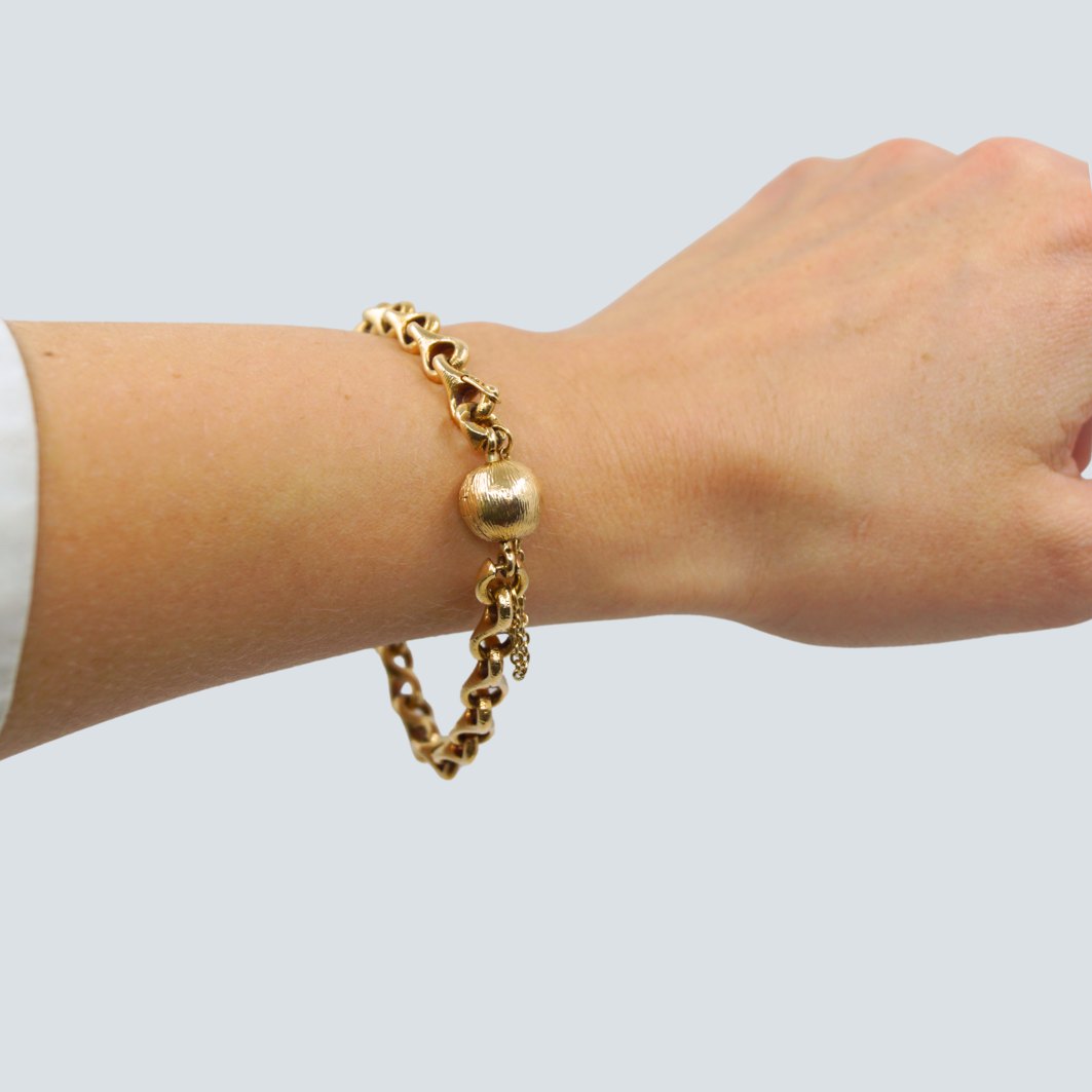 Bracelet of 14k gold, with a round clasp in 14k gold.