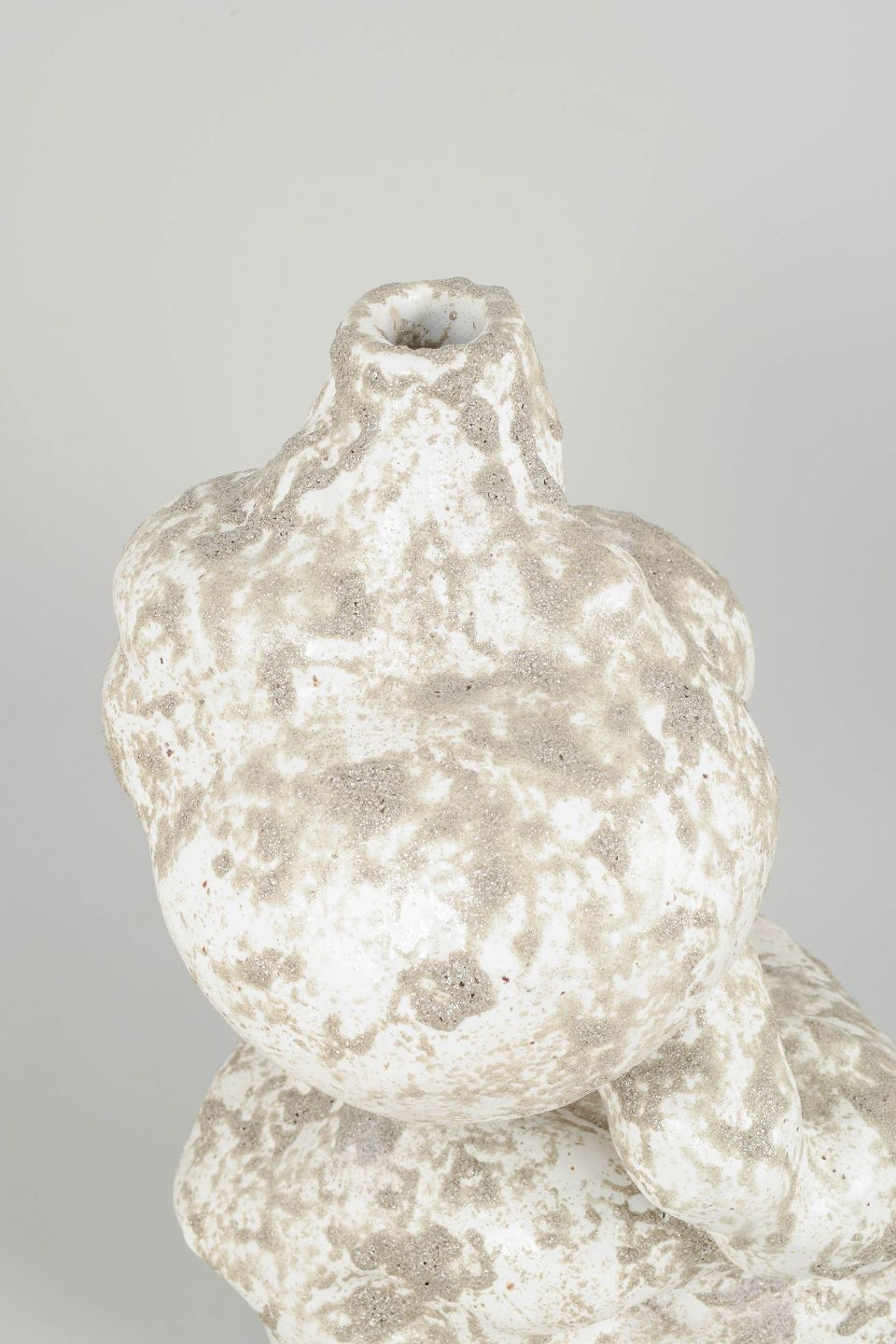 Christina Muff handcrafts her clay sculptures using techniques such as slab building and coiling. Large surfaces of clay are slowly shaped into detailed sculptures with complex, naturalistic forms. It is a time-consuming process, as the sculptures—due to their size—require a long drying period before being fired, often multiple times, to achieve the desired texture and color. During the glazing process, she uses a variety of techniques in combination with natural materials such as sand, chalk, and locally dug clay from Denmark. The goal is to create textures and surfaces that resemble man-made objects reclaimed by nature.