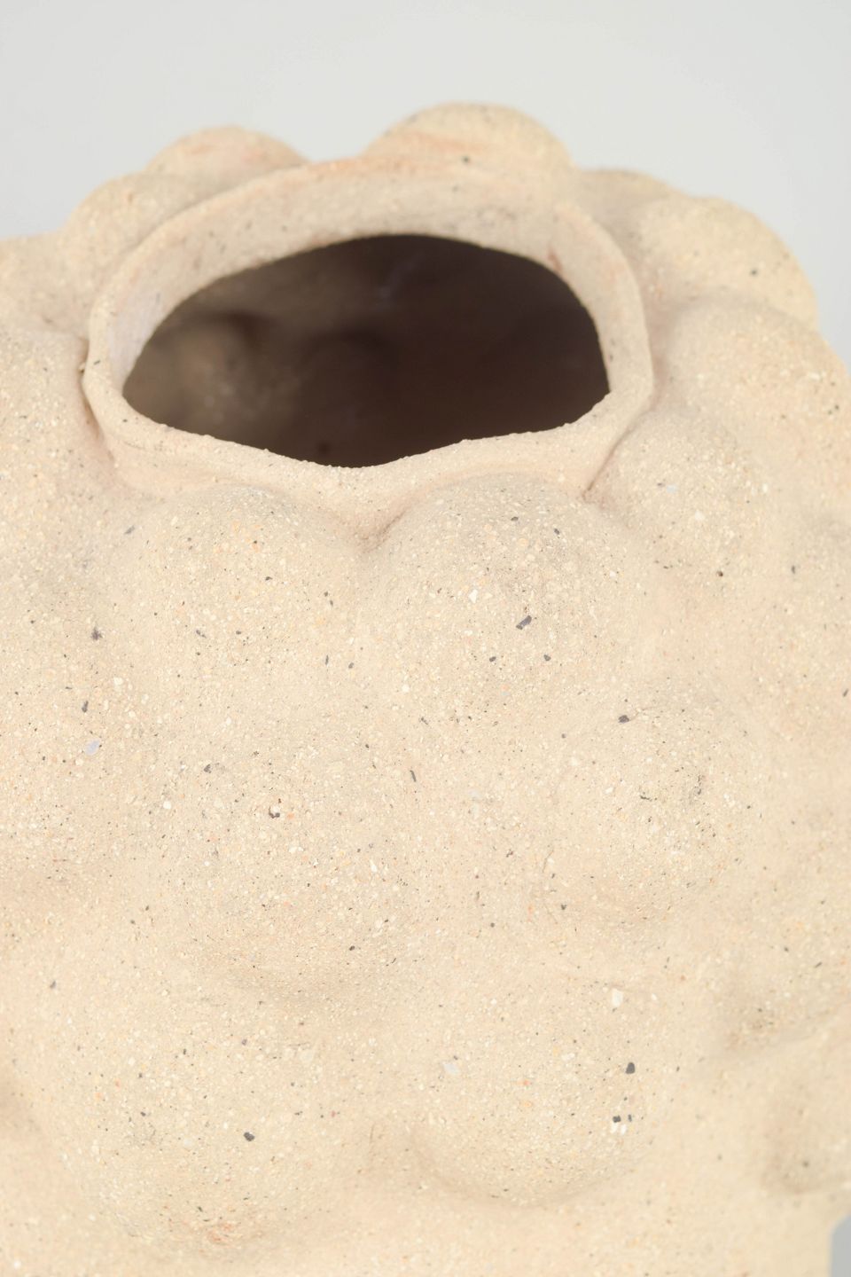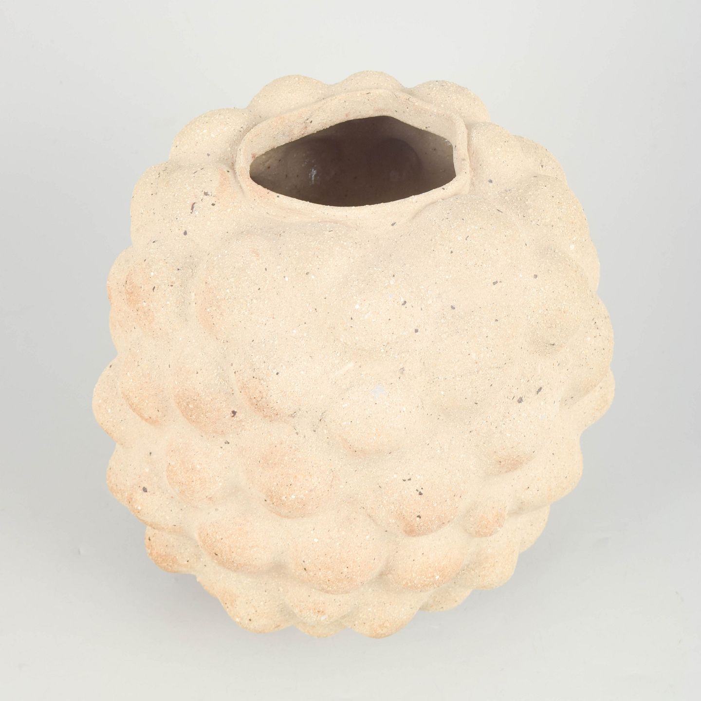 One of a kind, hand modeled, bubble shaped, vessel. This work is unglazed as the artist has developed a technique where the clay is washed to enhance its natural coarsness on the surface.