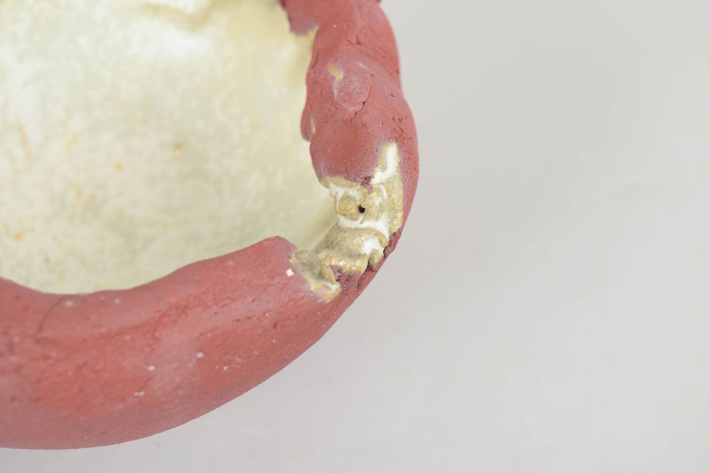 Christina Muff handcrafts her clay sculptures using techniques such as slab building and coiling. Large surfaces of clay are slowly shaped into detailed sculptures with complex, naturalistic forms. It is a time-consuming process, as the sculptures—due to their size—require a long drying period before being fired, often multiple times, to achieve the desired texture and color. During the glazing process, she uses a variety of techniques in combination with natural materials such as sand, chalk, and locally dug clay from Denmark. The goal is to create textures and surfaces that resemble man-made objects reclaimed by nature.