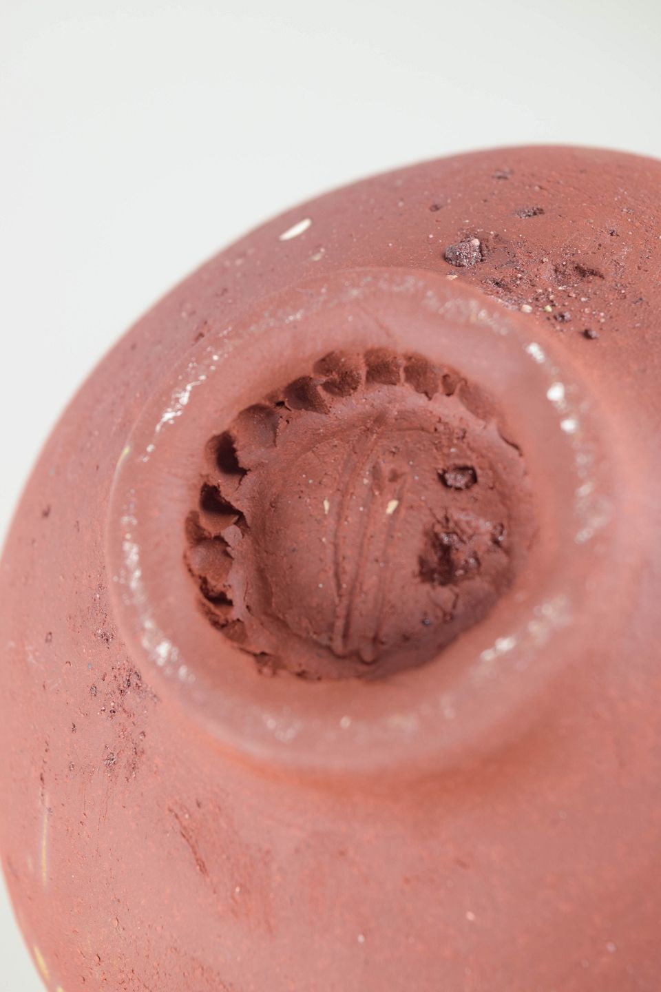Small, one of a kind red stoneware bowl on foot.