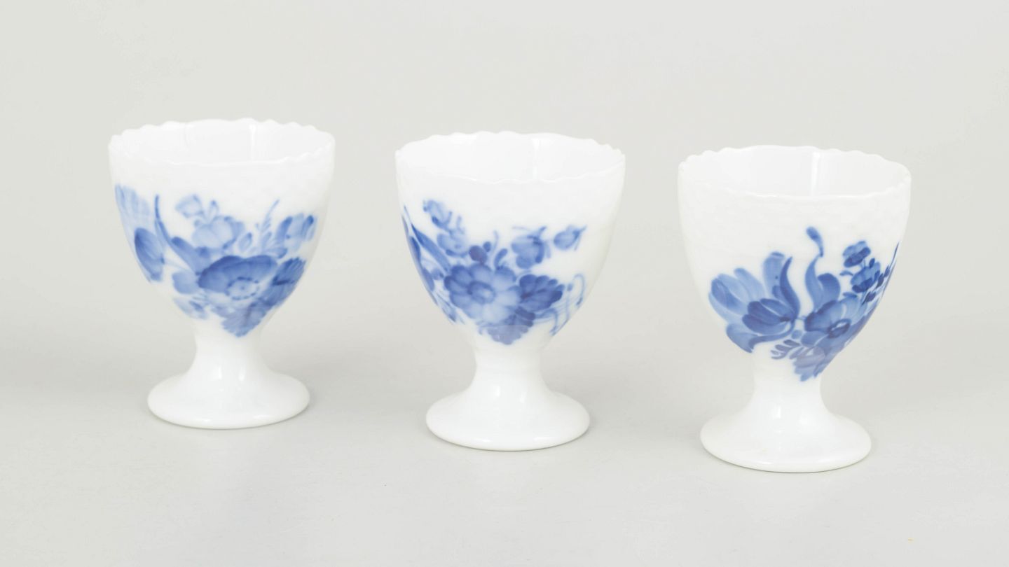 Royal Copenhagen, Blue Flower Curved set of three egg cups.