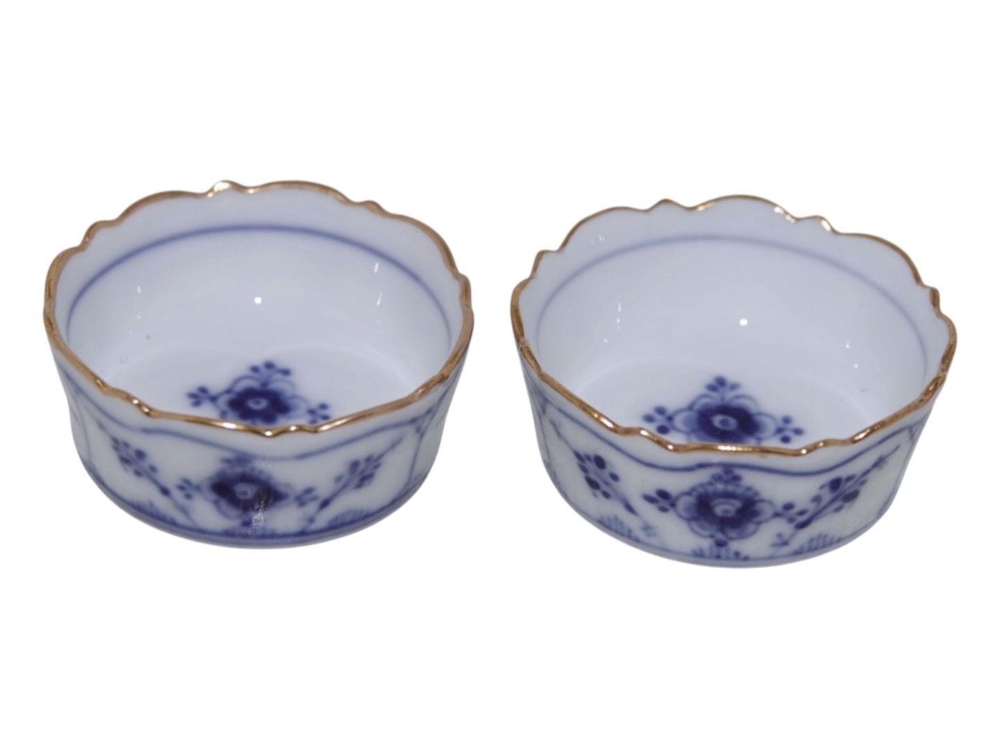 Royal Copenhagen Blue Fluted Plain with old trim, small round salt jars.