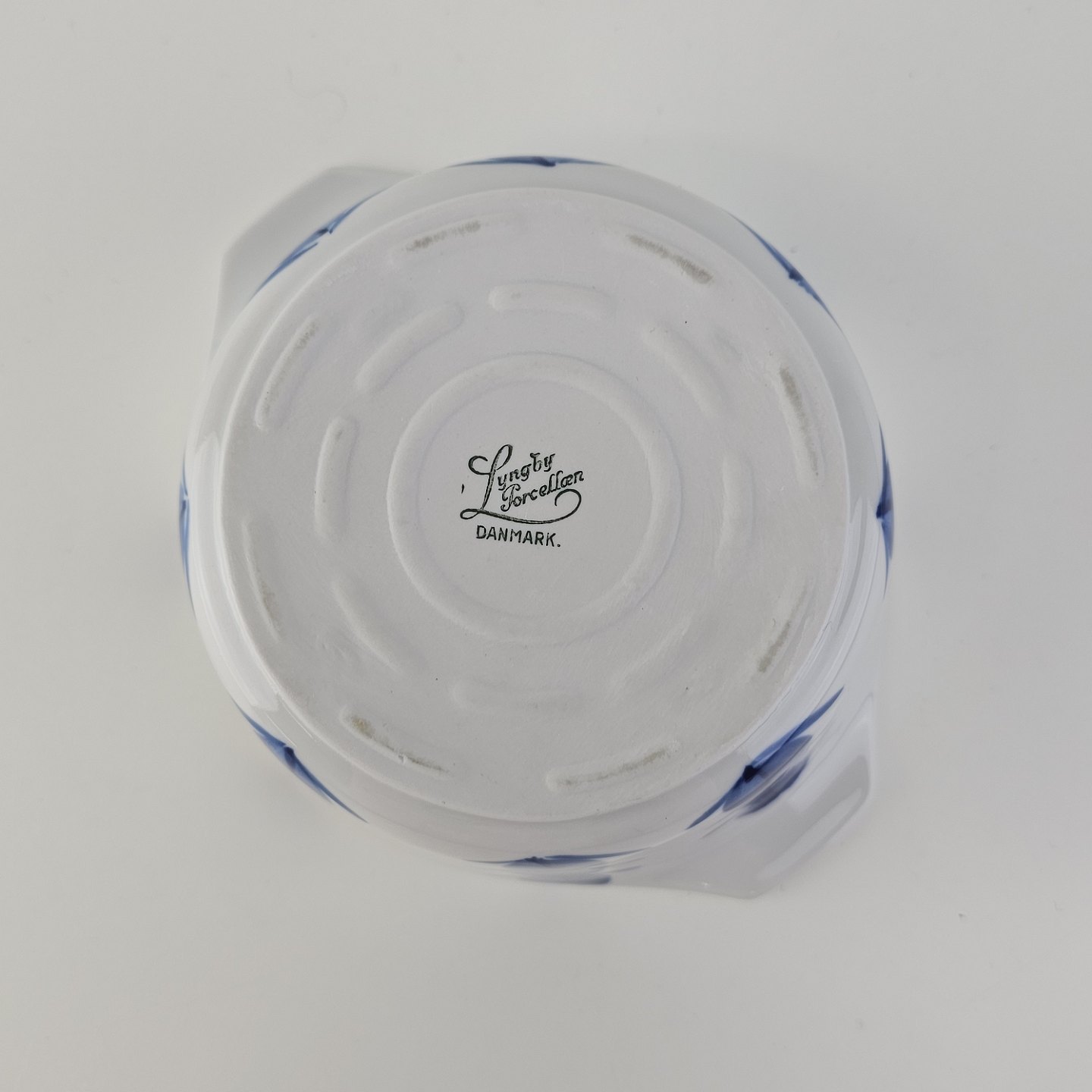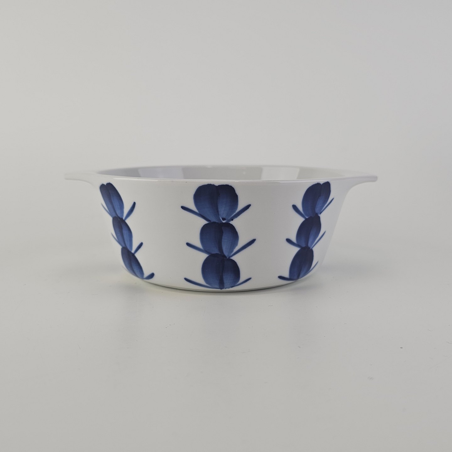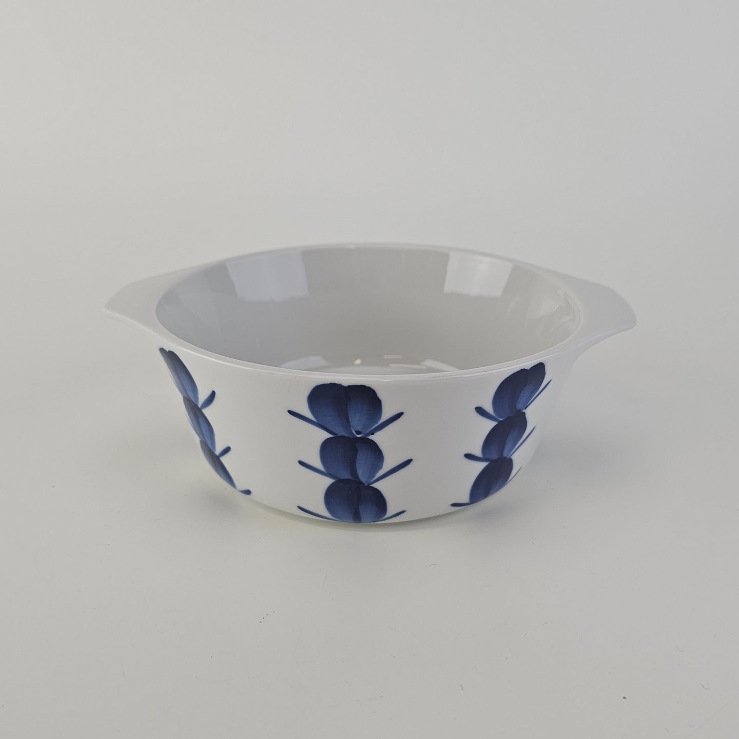 Skål med håndtag i porcelæn fra Stellet Danild 30, også kaldet Blomsterknop