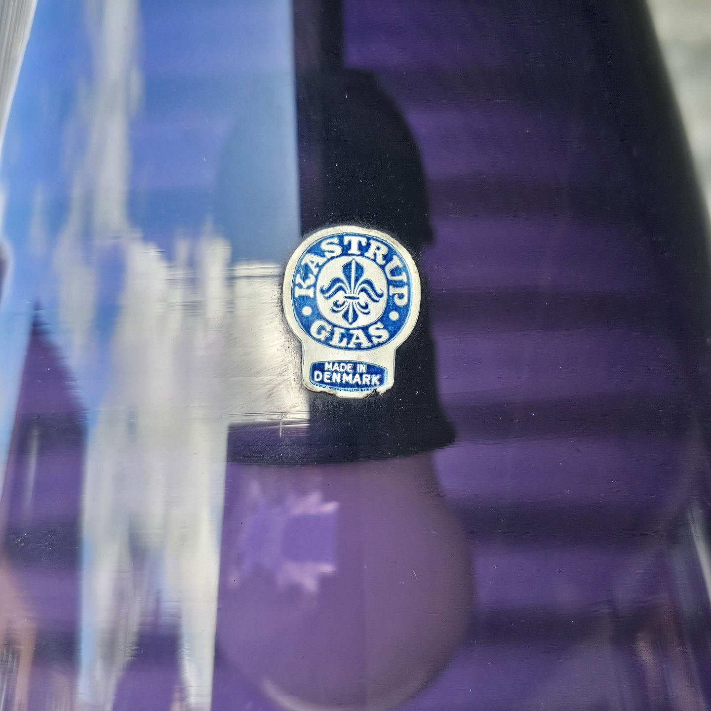 Sæt af to pendler i lilla glas med montering i teaktræ