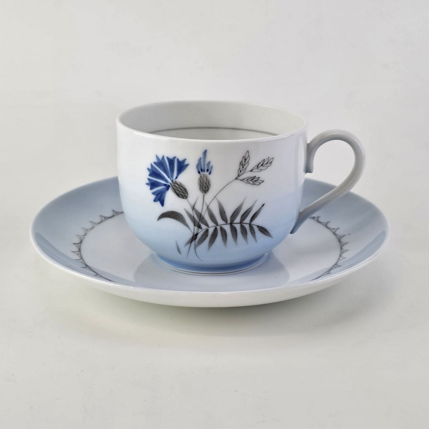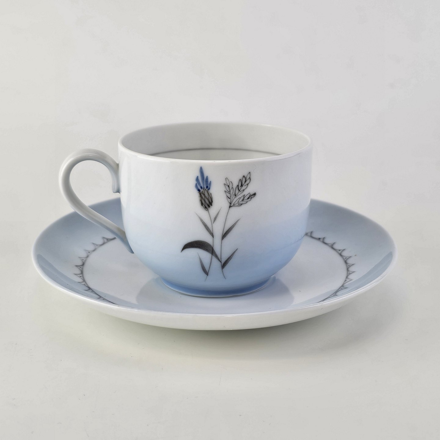 Demeter er af hvidt porcelæn med graduering af blå i kanten og med motiv af kornblomst