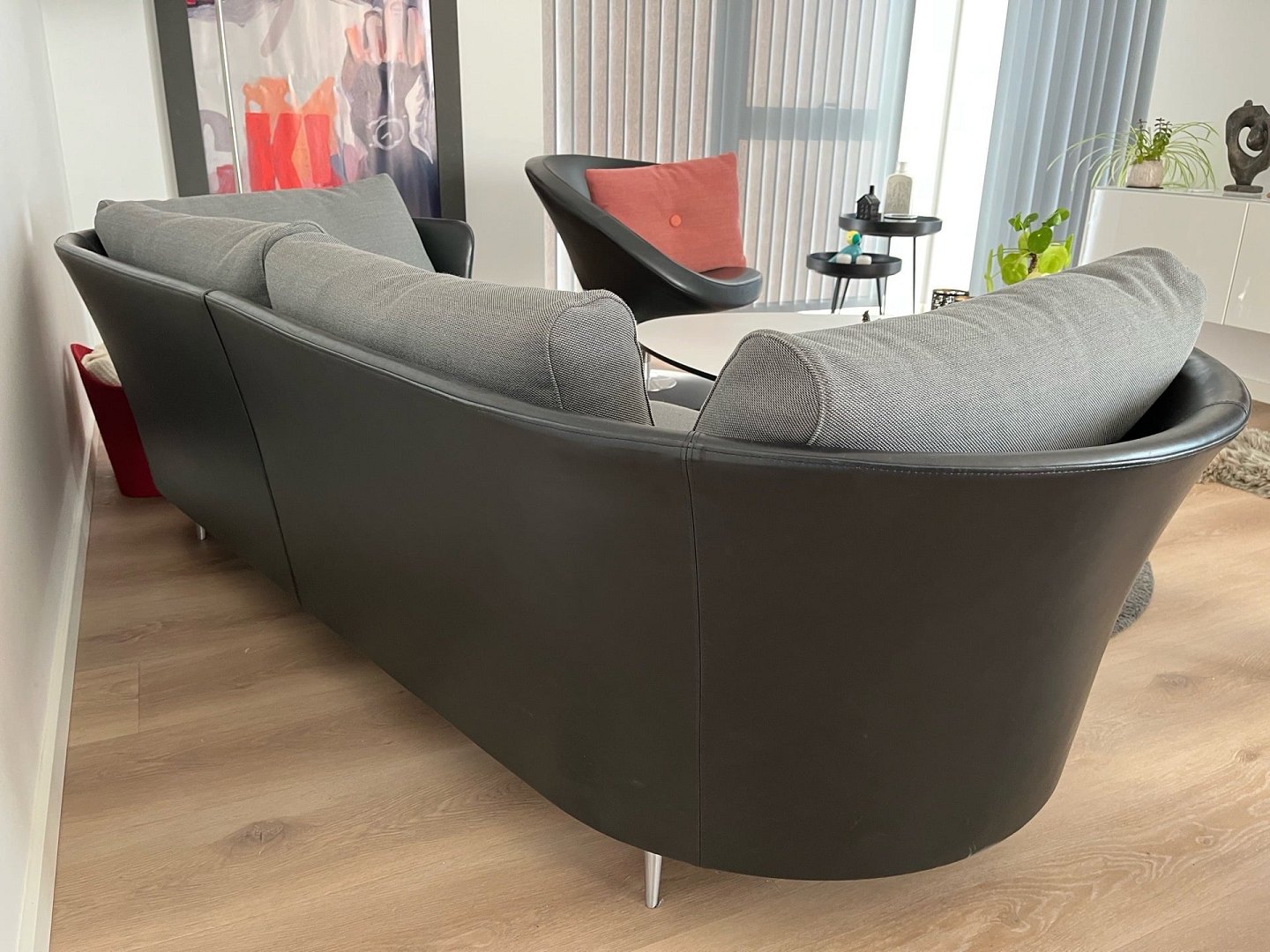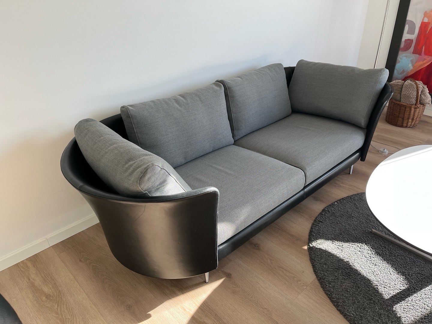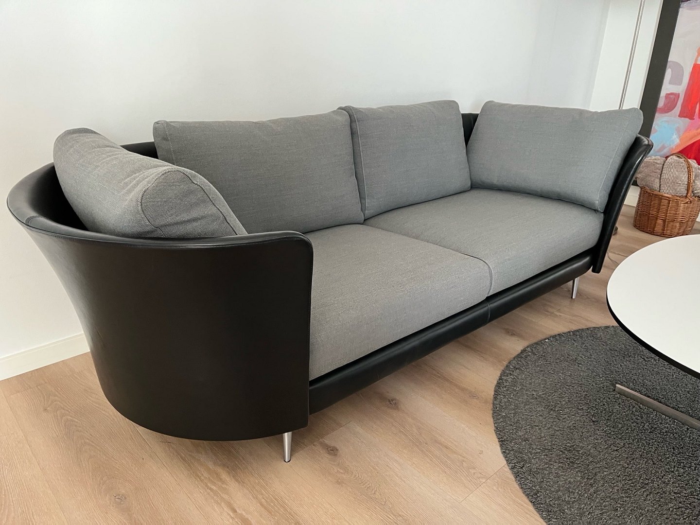 Exclusive Mogens Hansen Vascas sofa in black Preston leather and Hallingdal fabric. Original new price. 51,975,-