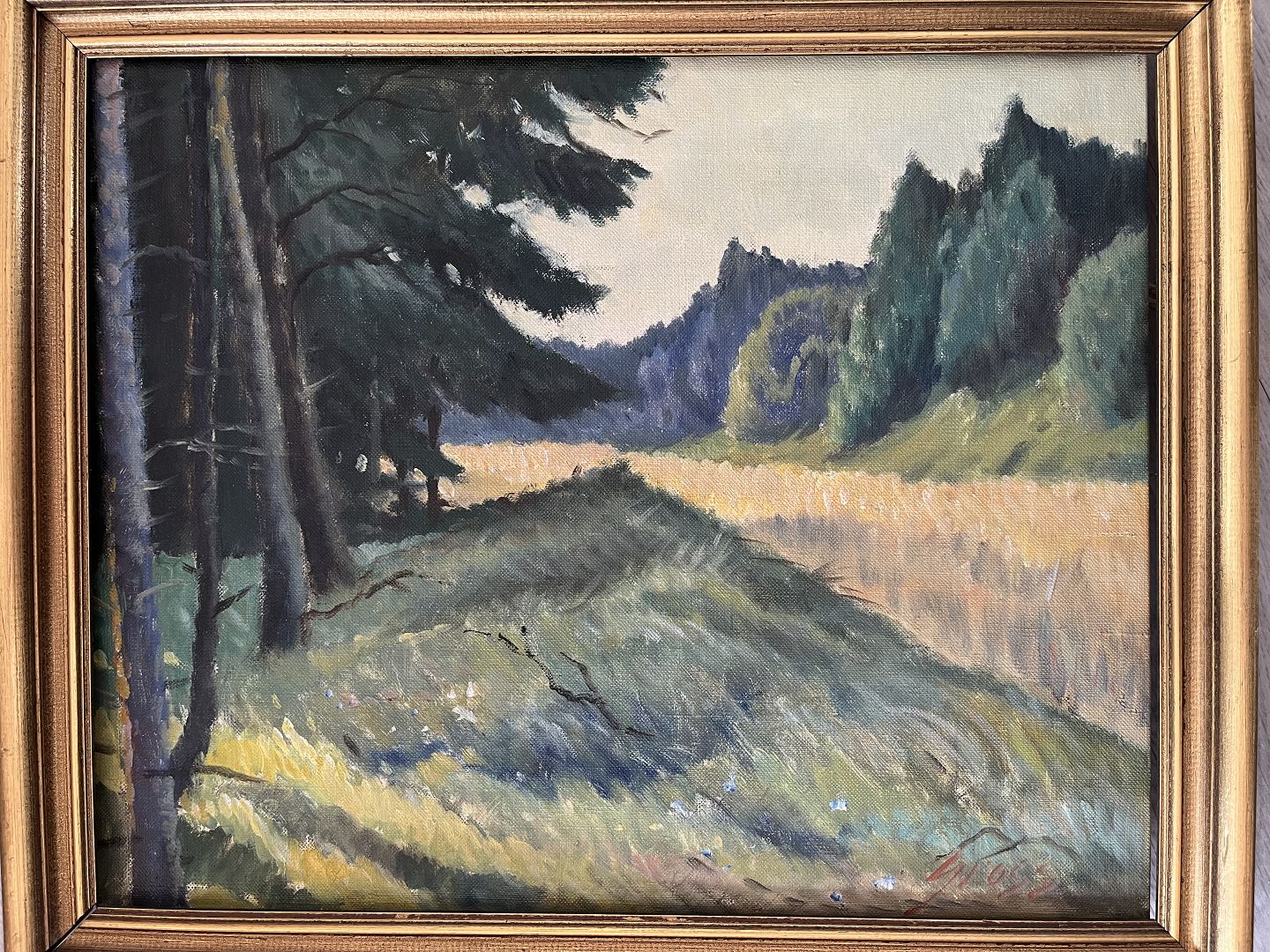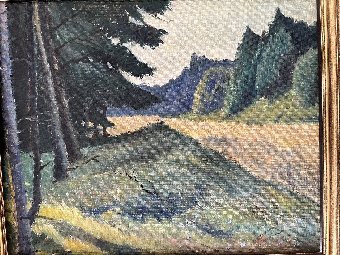 Maleri af Einar Gross - Landskab med nåletræer.