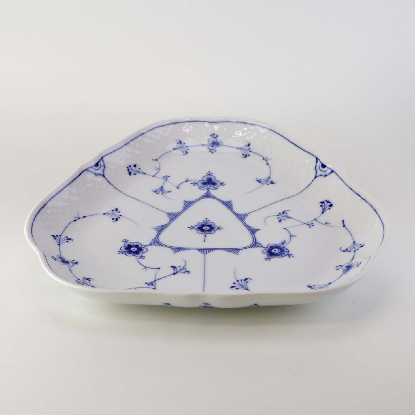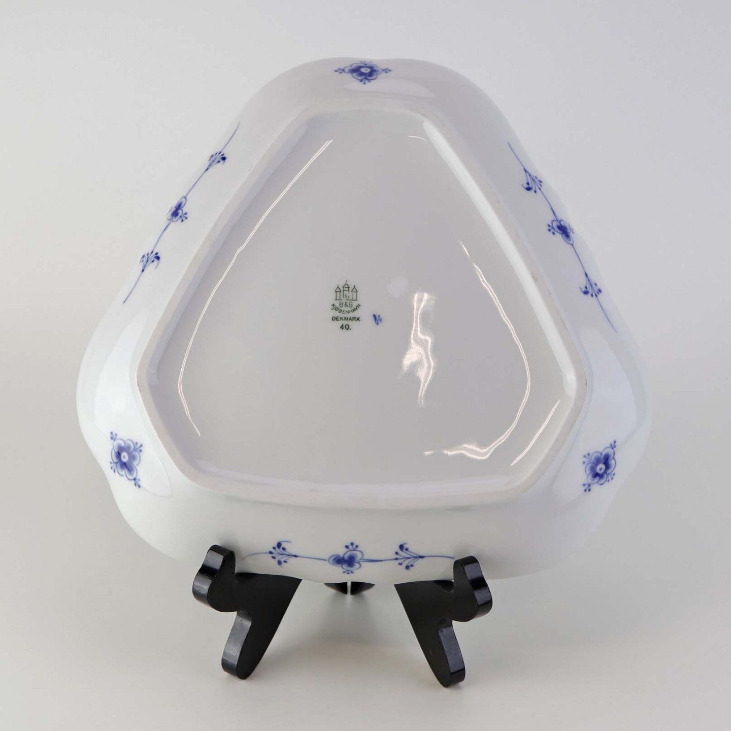 Trekantet kagefad i porcelæn fra stellet Blåmalet. Nr.40