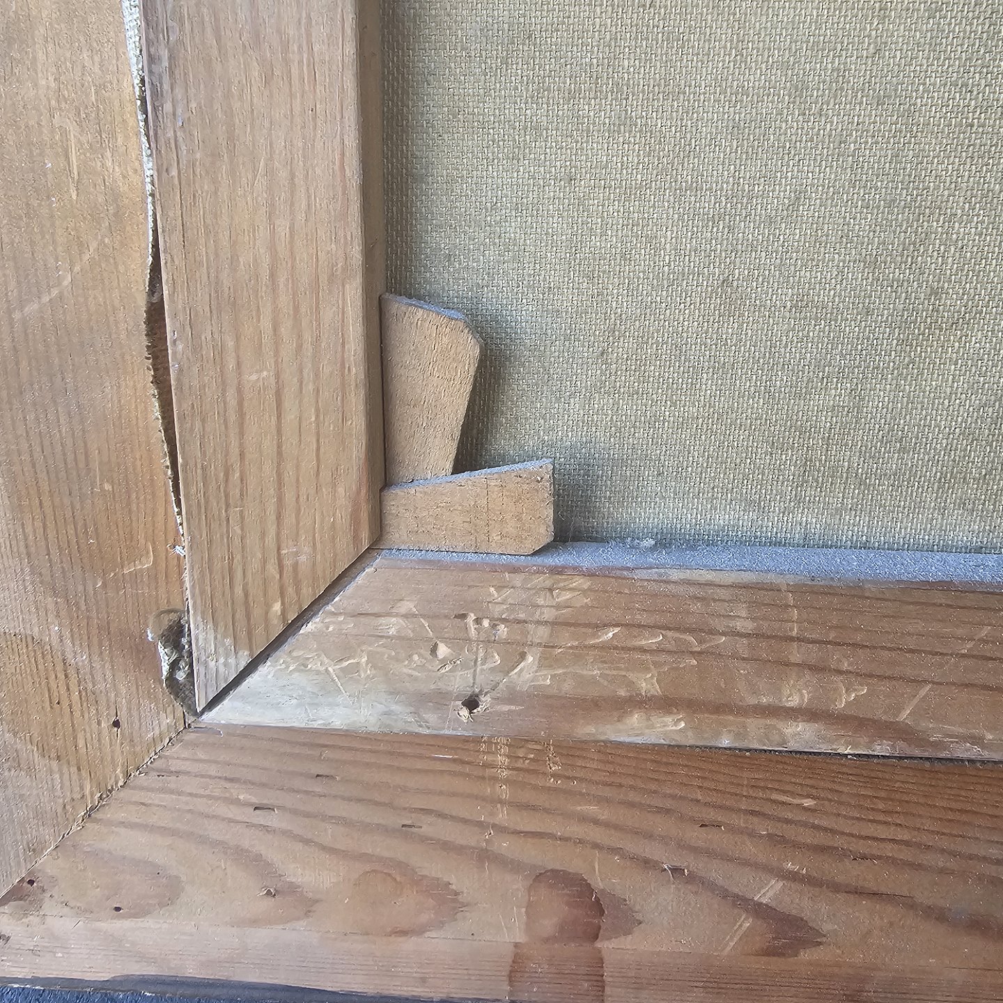 Oliemaleri på lærred monteret i bred træramme med landskabsmotiv