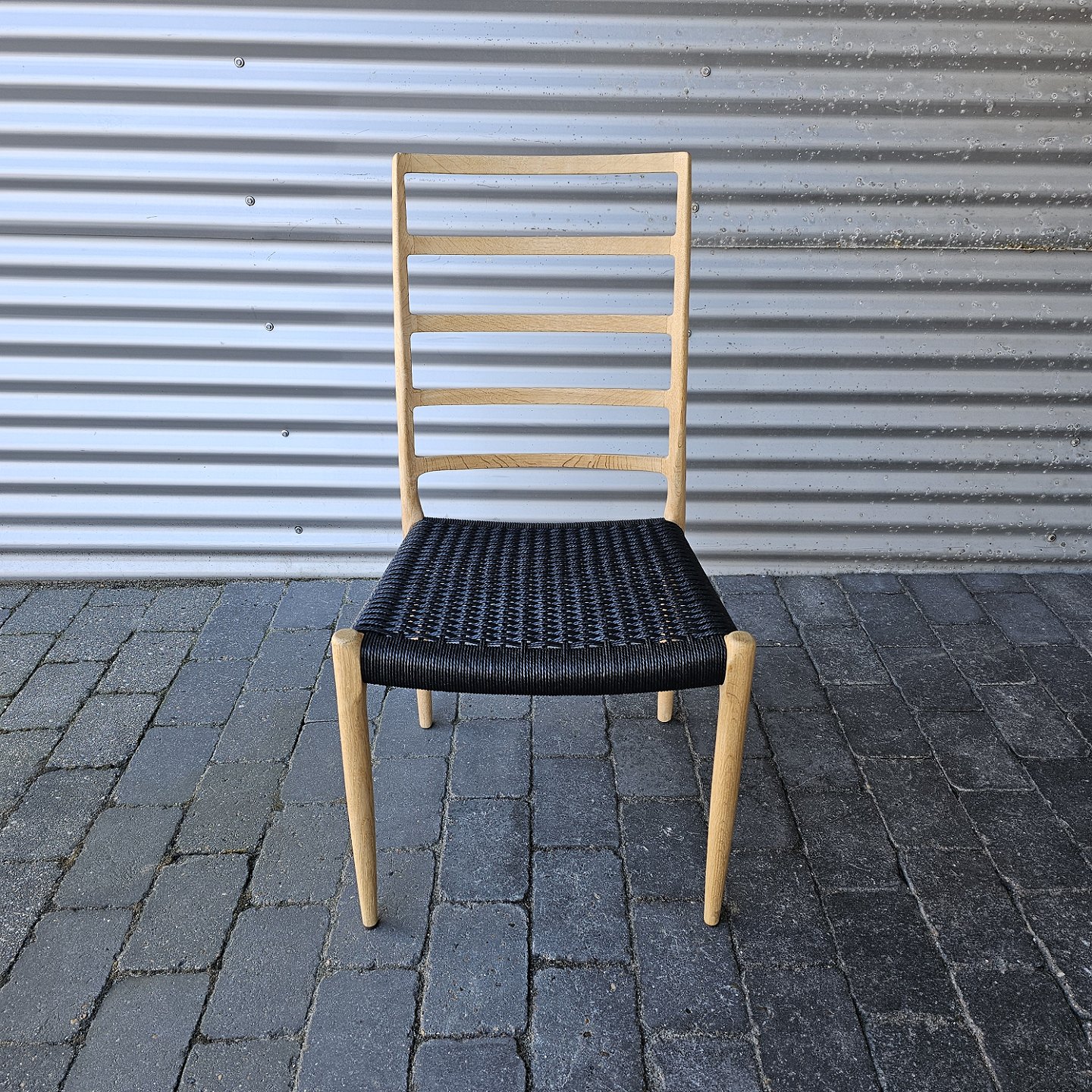 Niels Ole Møller spisebordsstol i eg med sort flettet sæde