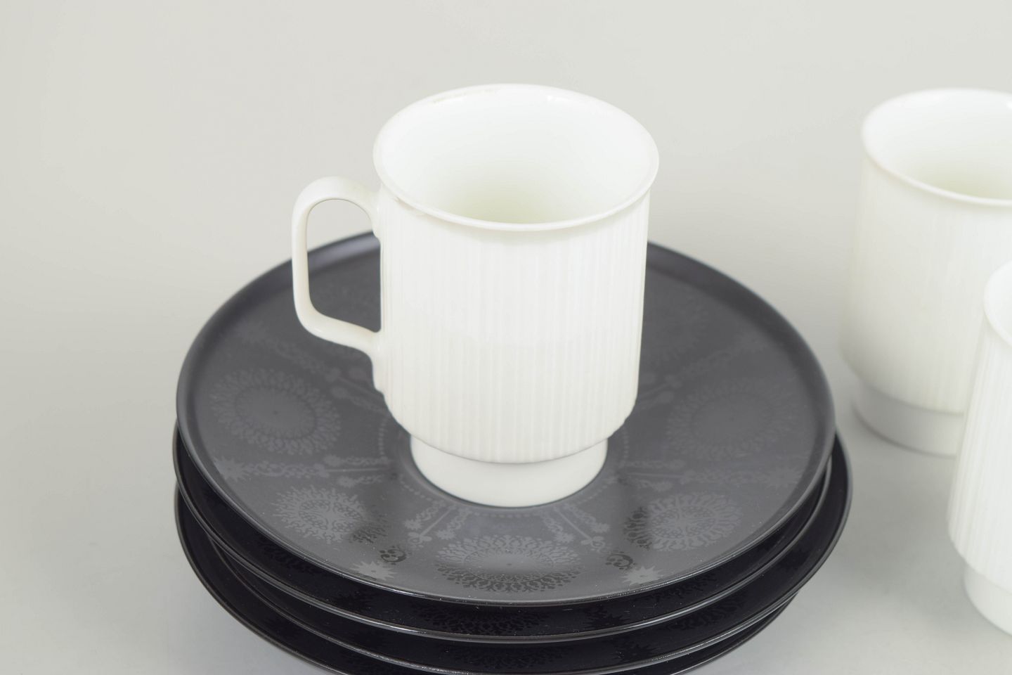 Elegant porcelain espresso cups with matching saucers, designed in a refined and functional style characteristic of Tapio Wirkkala’s work for Rosenthal in the 1980s.