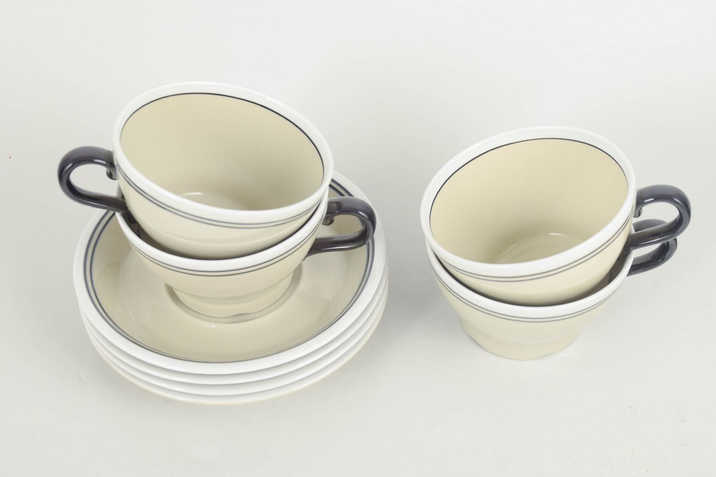 Jackie Lynd for Rörstrand, set of four teacups with matching saucers “Nocturne”.