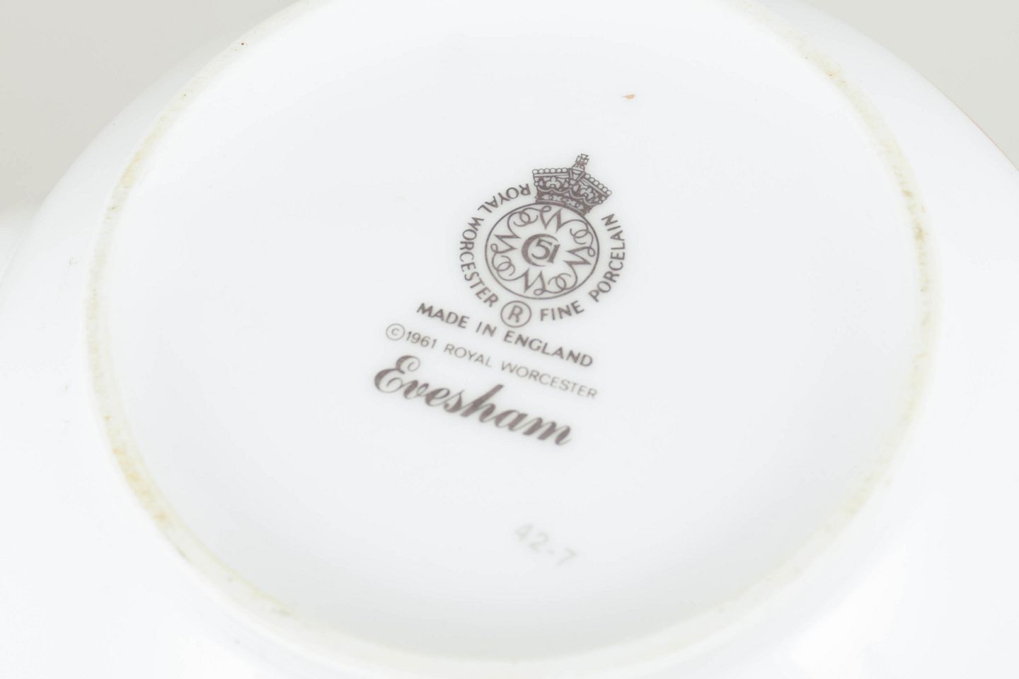 Royal Worcester was founded in 1751 in Worcester, England, and is one of the oldest porcelain manufacturers in Europe. The factory is renowned for its high quality and distinctive decorative styles, including the Evesham series introduced in the mid twentieth century, featuring naturalistic fruit motifs inspired by English orchards.