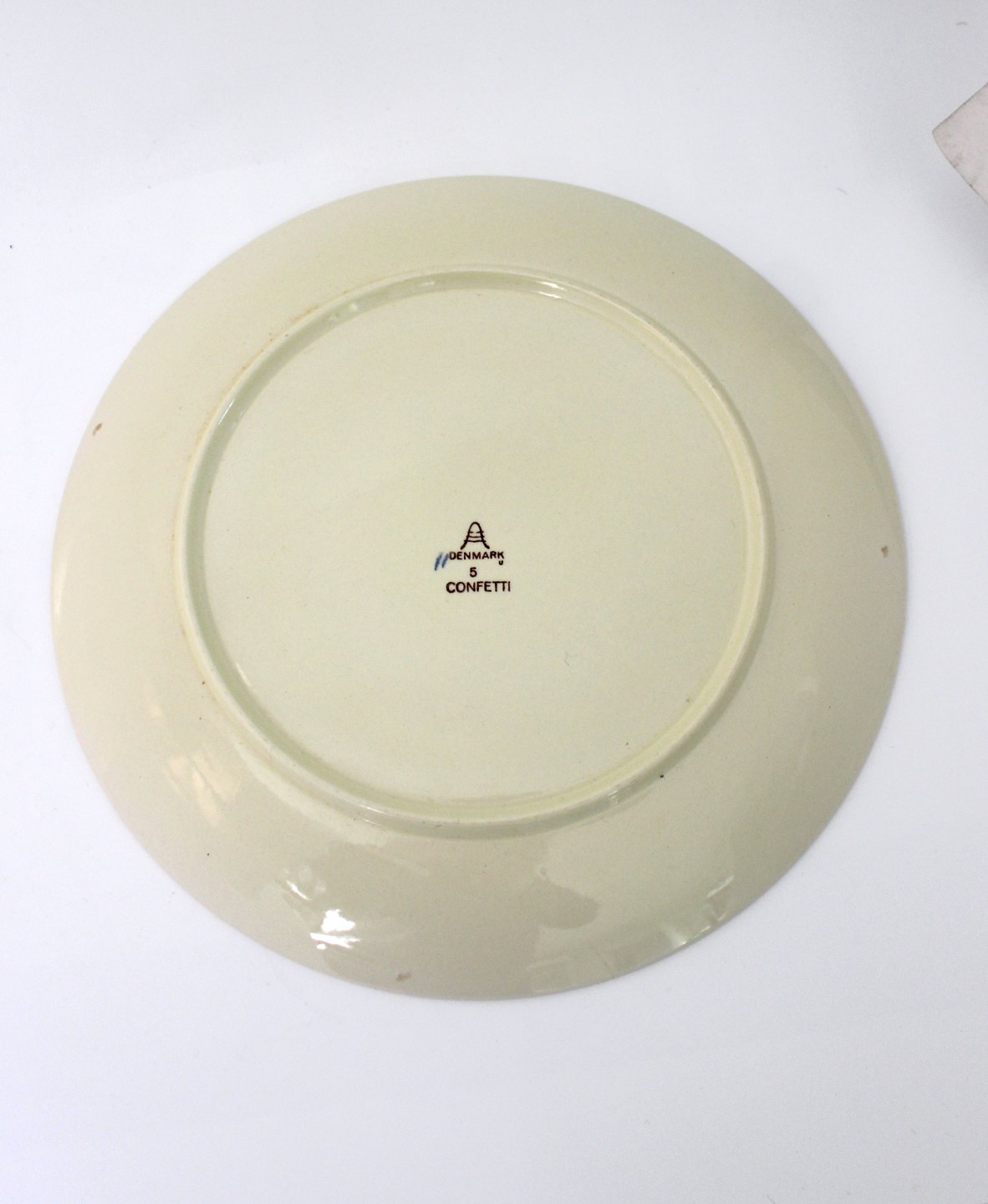 Text available in Danish: Stor middagstallerken, 25,5 cm. Confetti, Aluminia